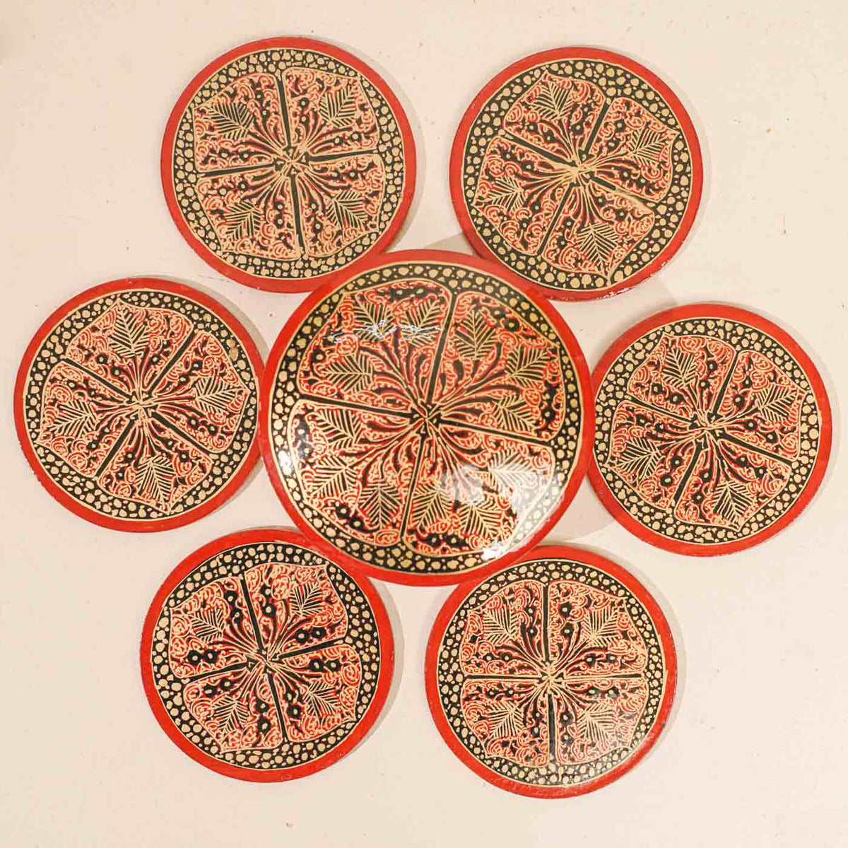 - Bring home the elegance of Kashmiri artistry with this hand-painted coaster set.