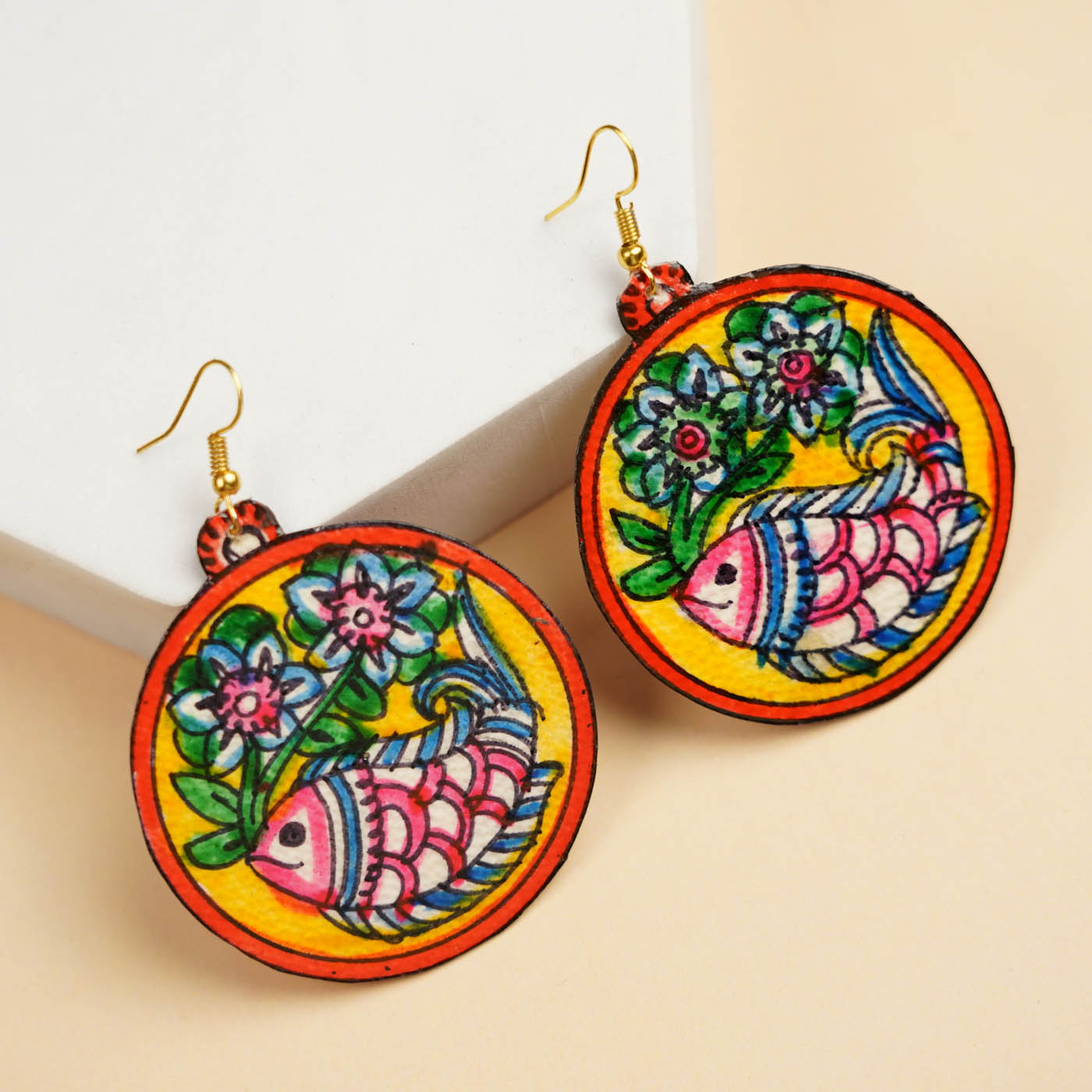 - The round frame holds a vivid hand-painted fish motif, brought to life with fine brushwork, vibrant tones, and intricate traditional detailing.