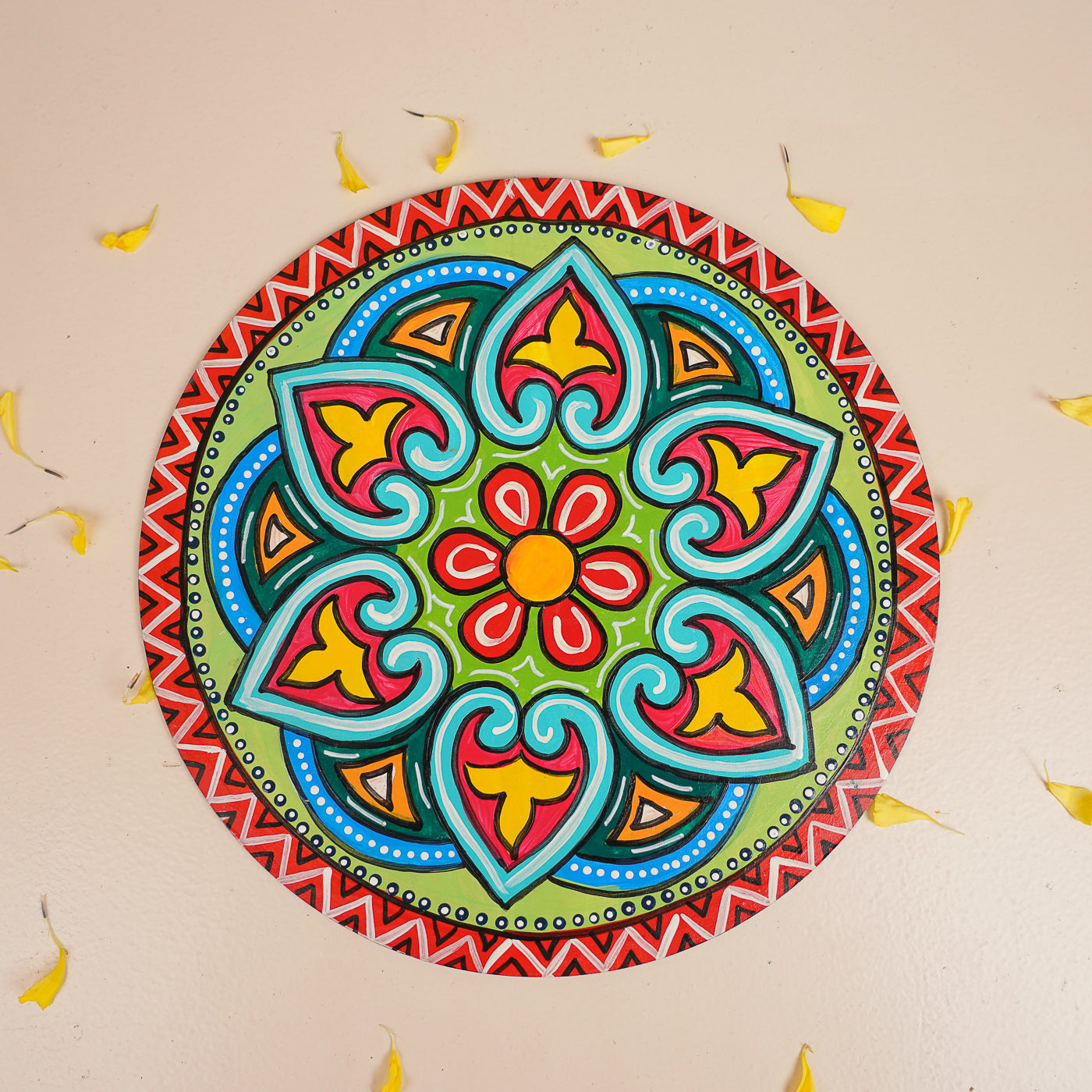 - Bring traditional charm to your festive décor with this handcrafted round betel mandala rangoli.