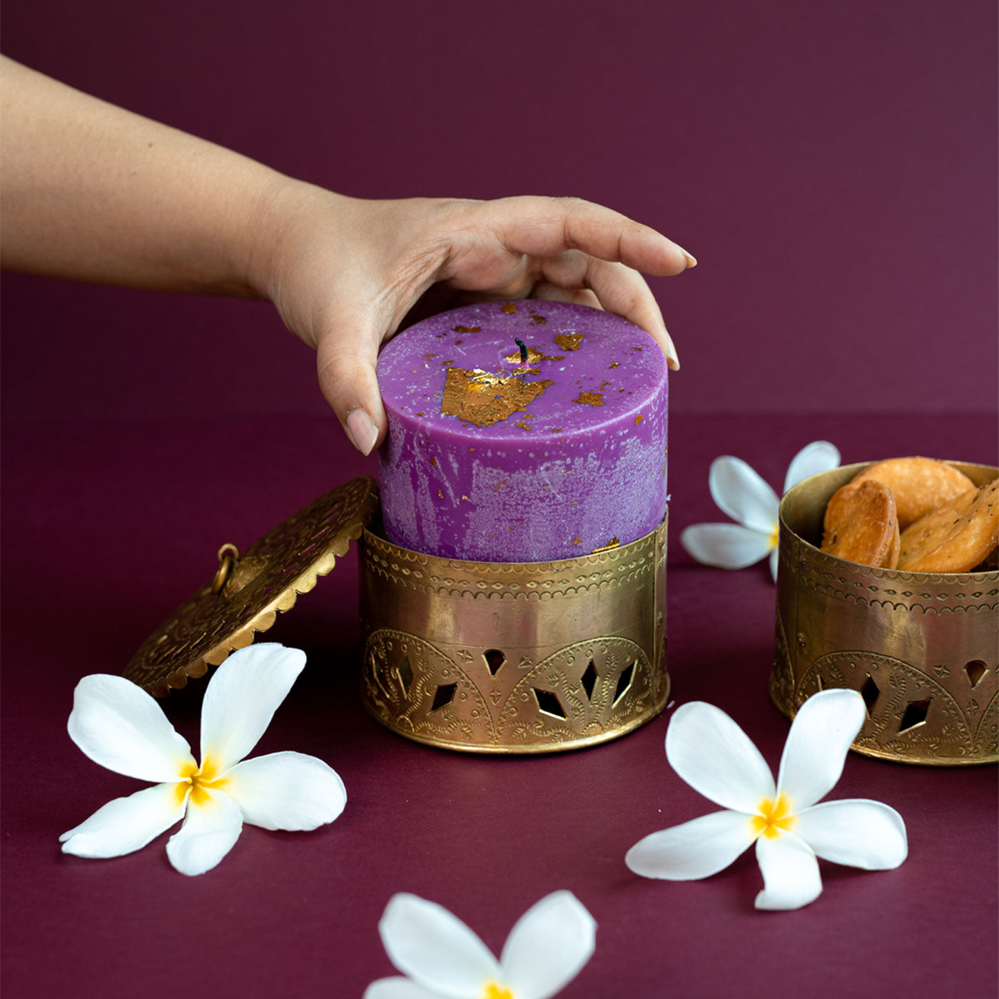 This festive season, bring home the warmth of vanilla scented candles in handcrafted brass jars.