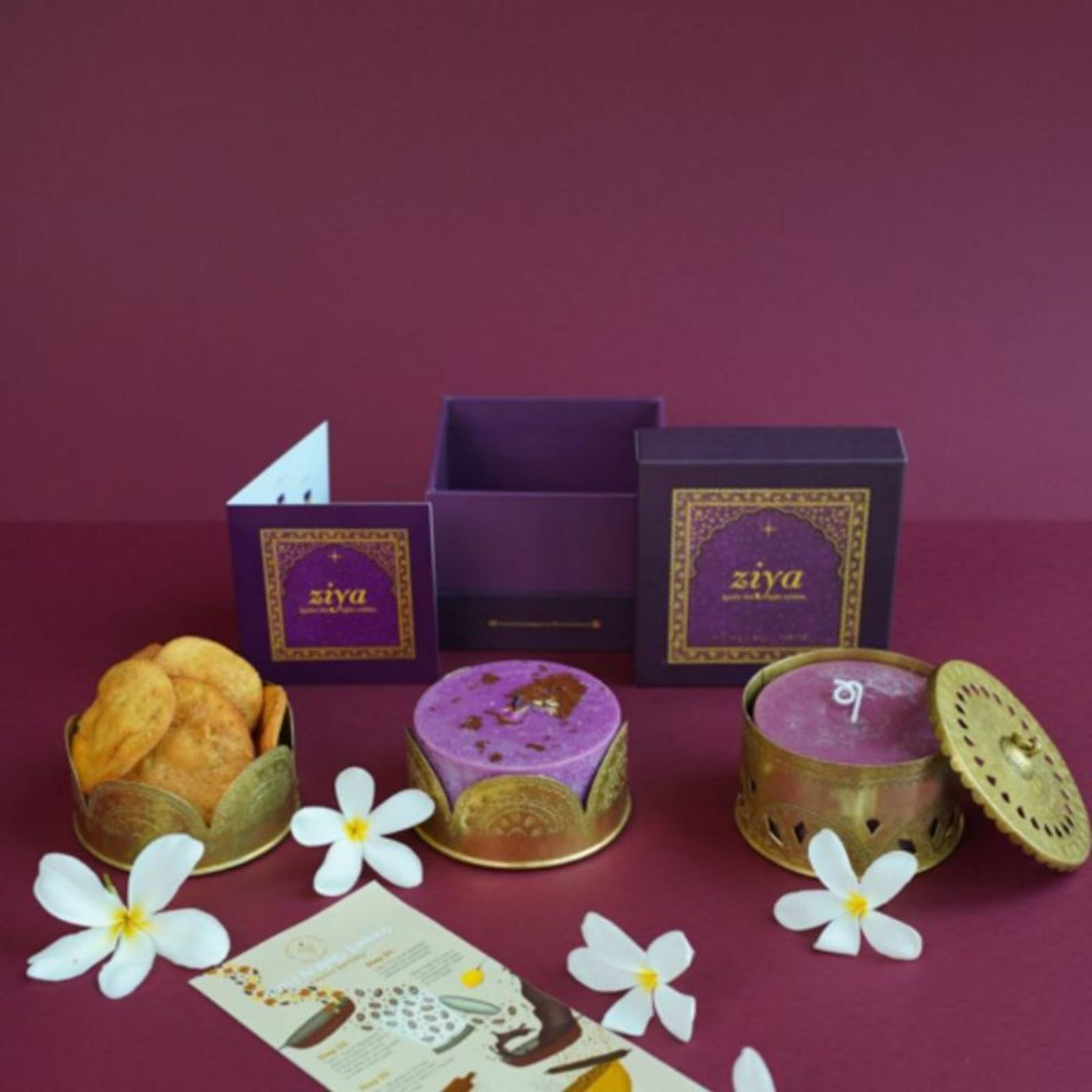 • Ziya Dibbi & Scallop Gift Box: 1 x Candle holder jar, 1 x Scented Candle