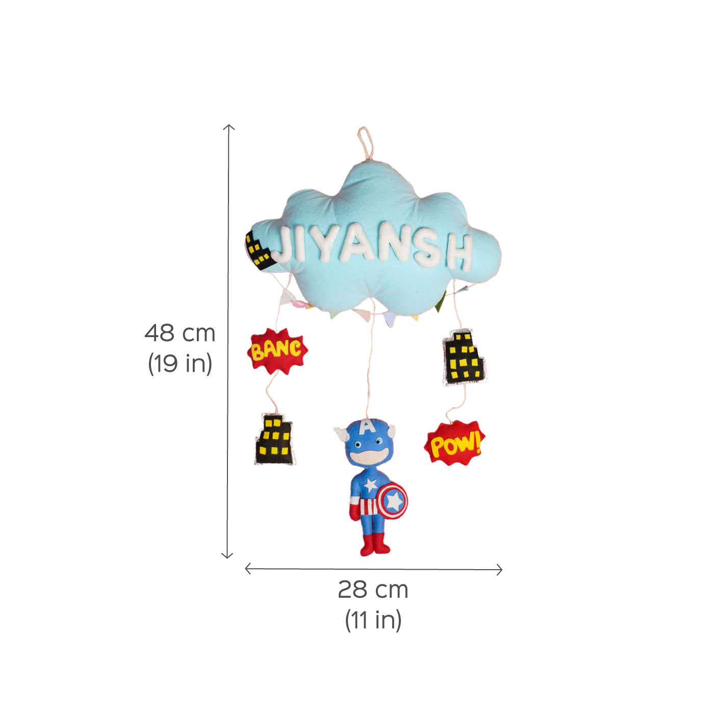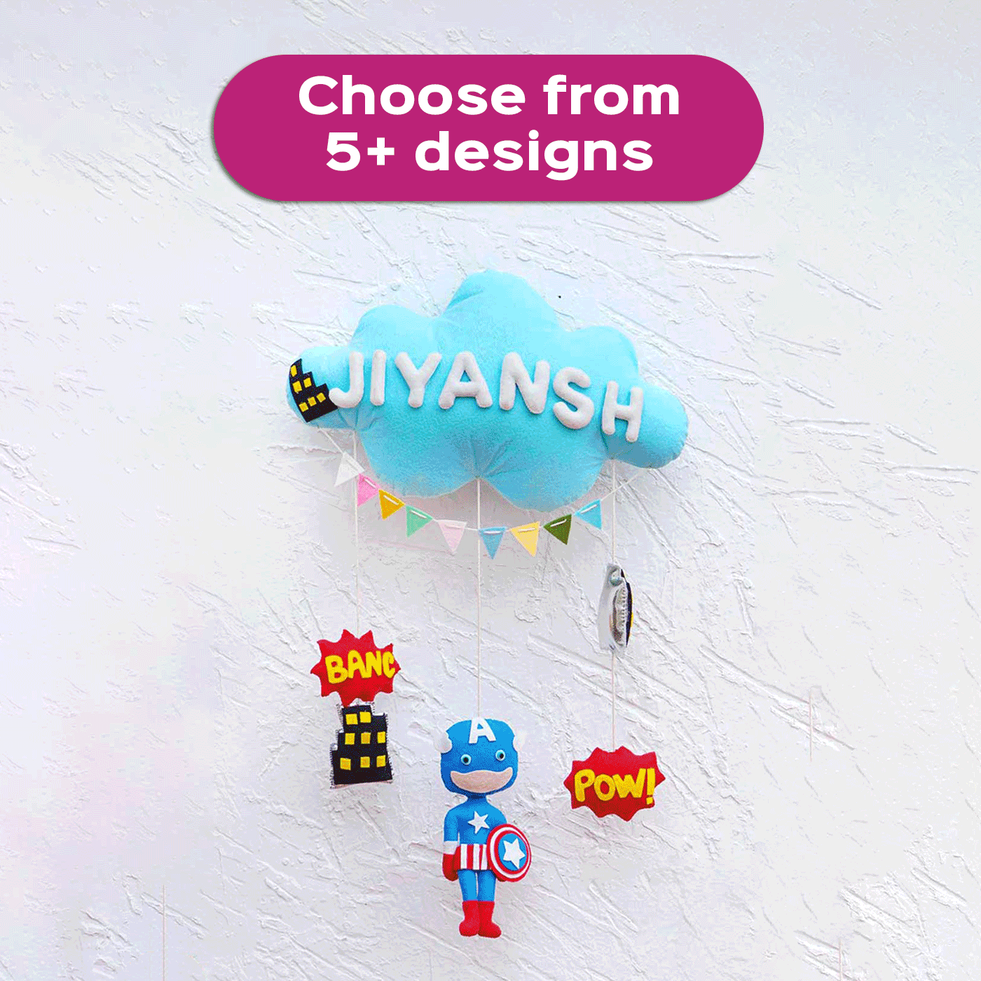 Handcrafted Personalized Superhero Cloud Theme Name Plate For Kids