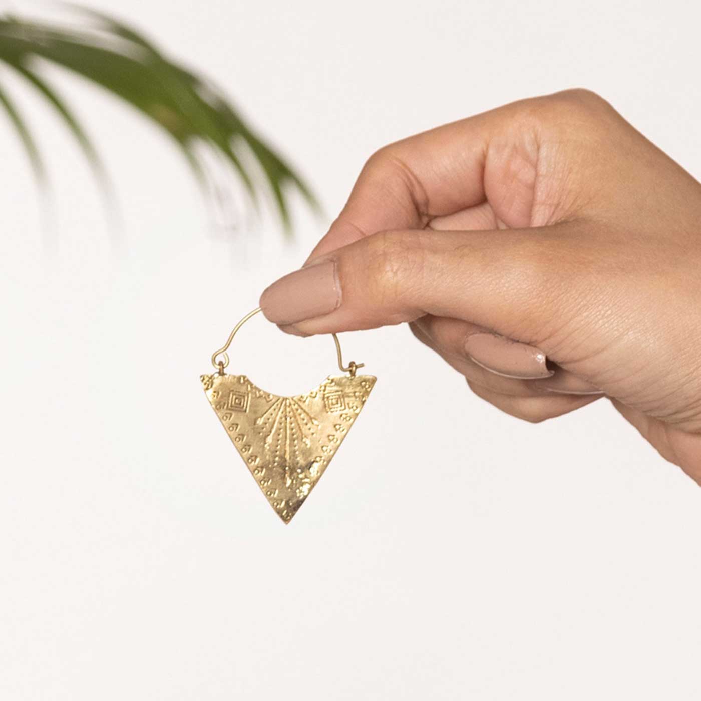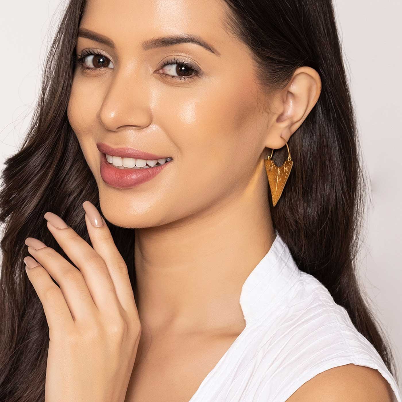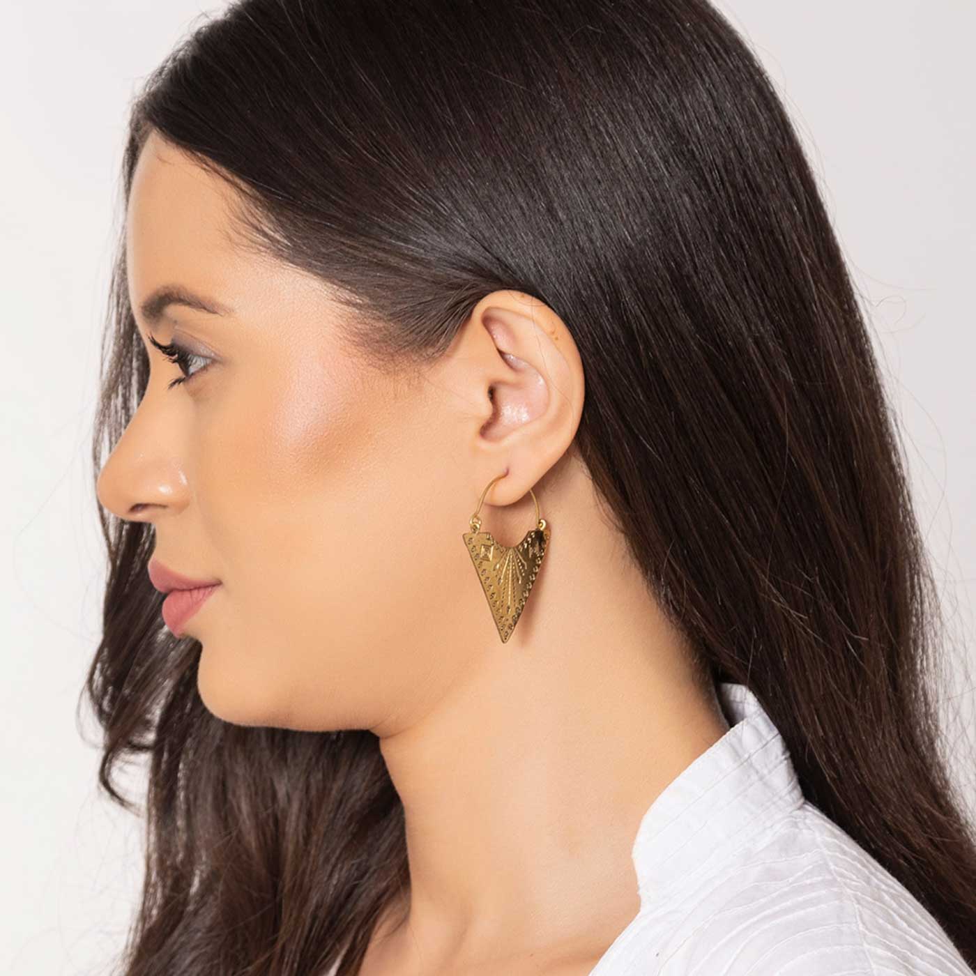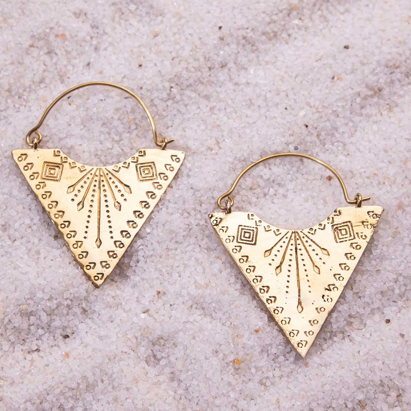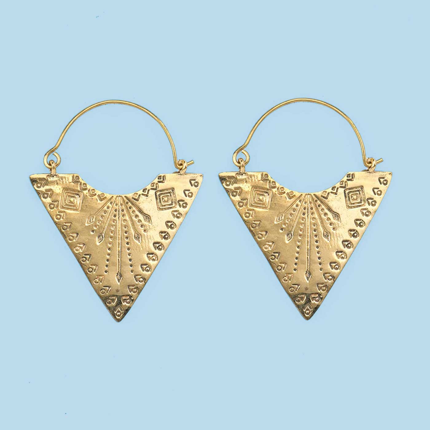 Handcrafted Tribal Triangle Party Wear Gold Plated Brass Earrings