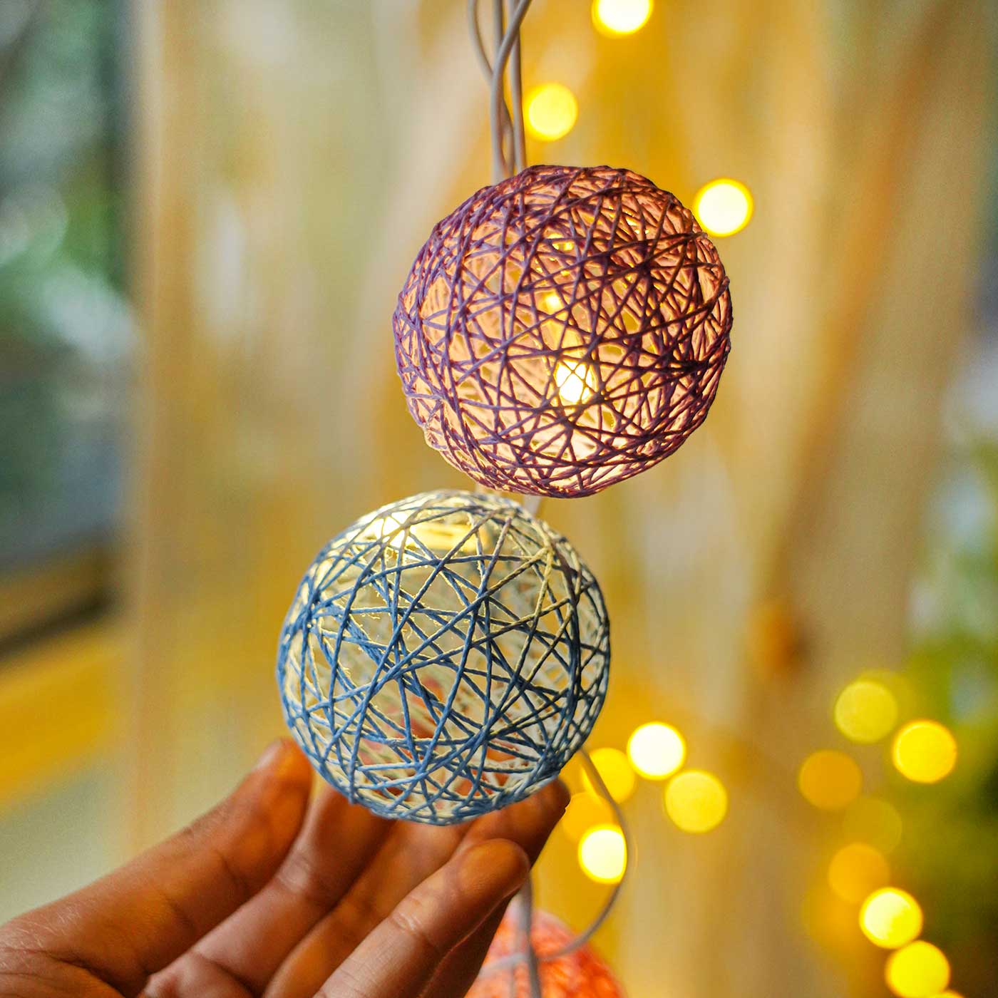 3m, 20 Bulbs | Handcrafted Yarn Spherical LED Fairy Light Hangings - P