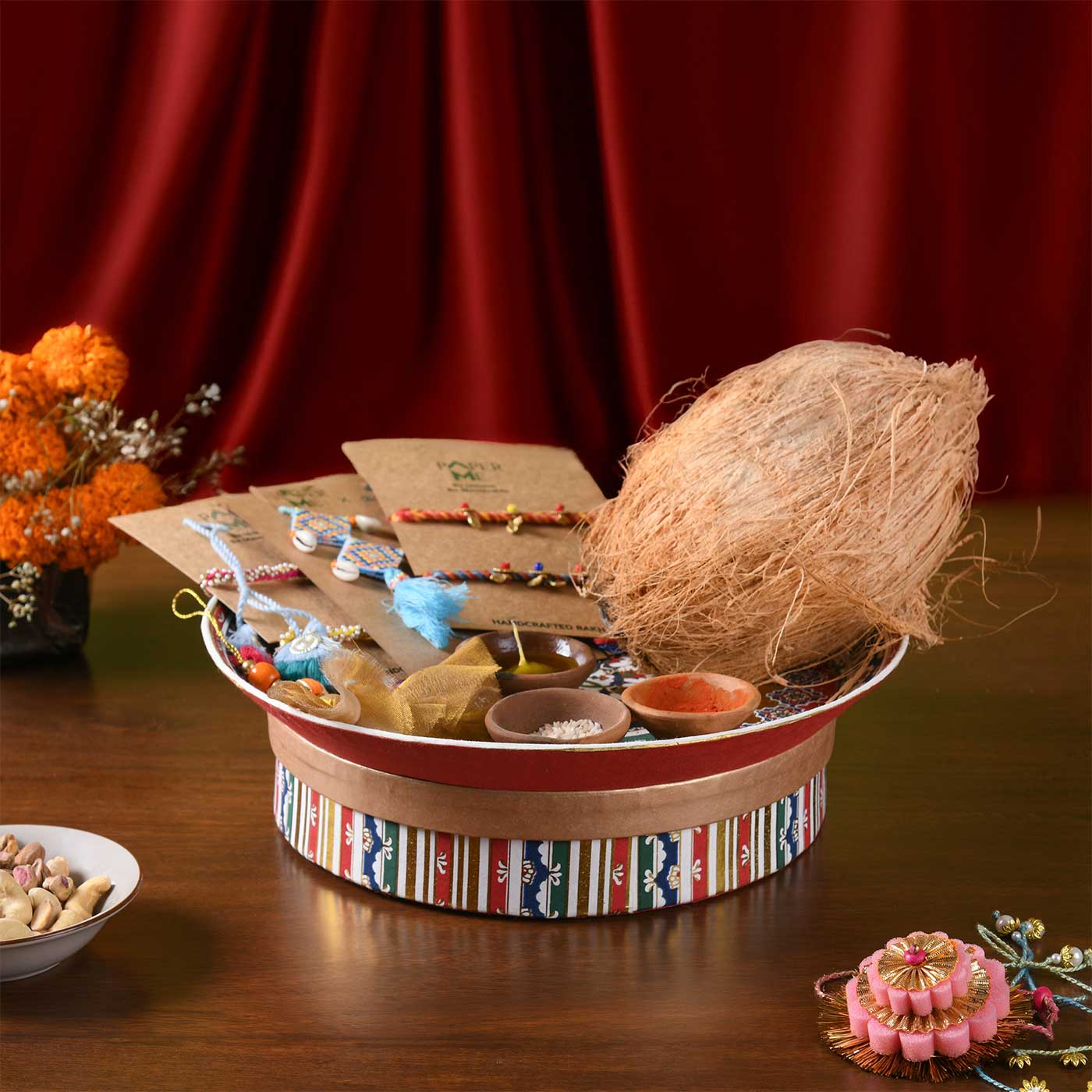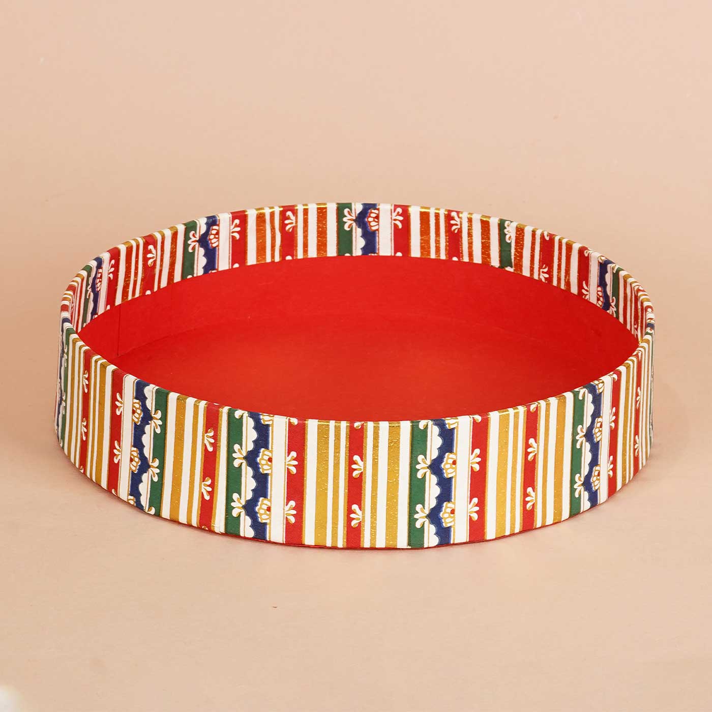 - Celebrate festivals with this beautifully handcrafted Aarti Thal-shaped gift box, inspired by traditional Indian rituals.