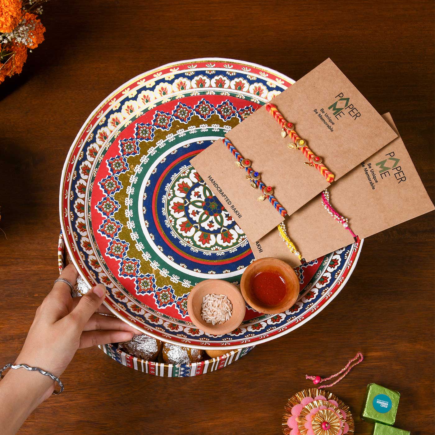 - Its round design and handcrafted finish add elegance to your Rakhi celebrations or return gifts for guests.