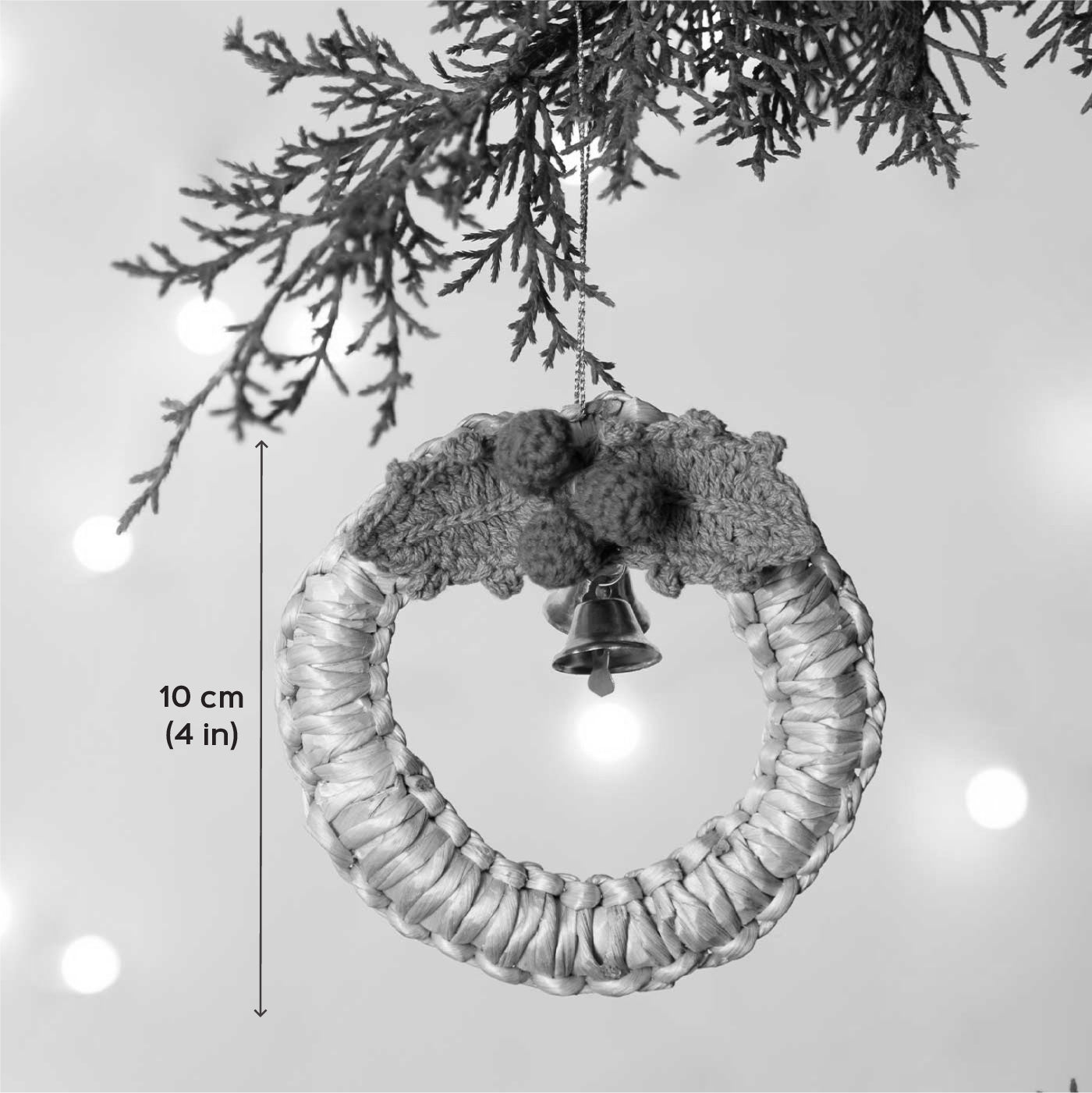 - Crafted from natural banana bark, this wreath hanging brings a warm, earthy charm to festive décor.