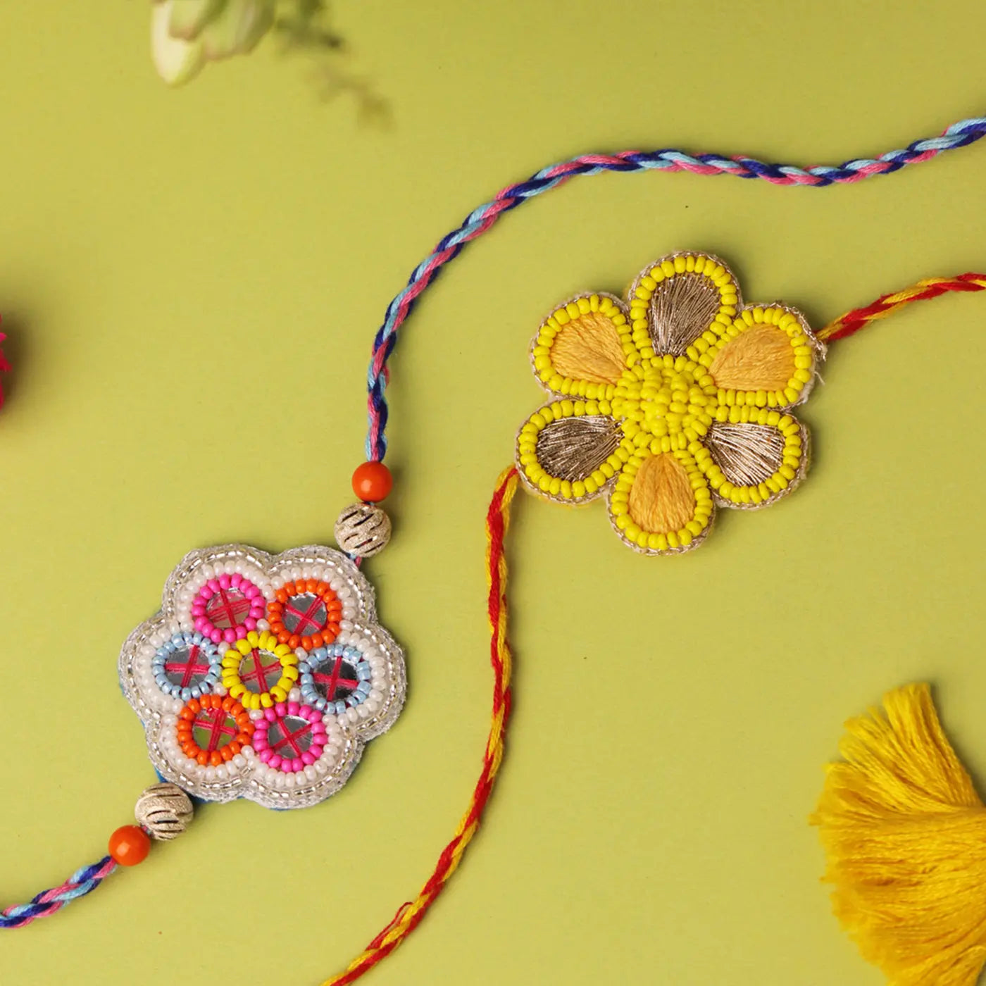 Celebrate Raksha Bandhan with this beautifully crafted floral rakhi set for siblings.
