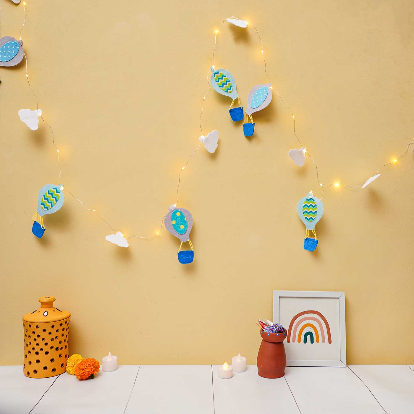 📏 3 meters, 30 LED bulbs, 15 felt motifs