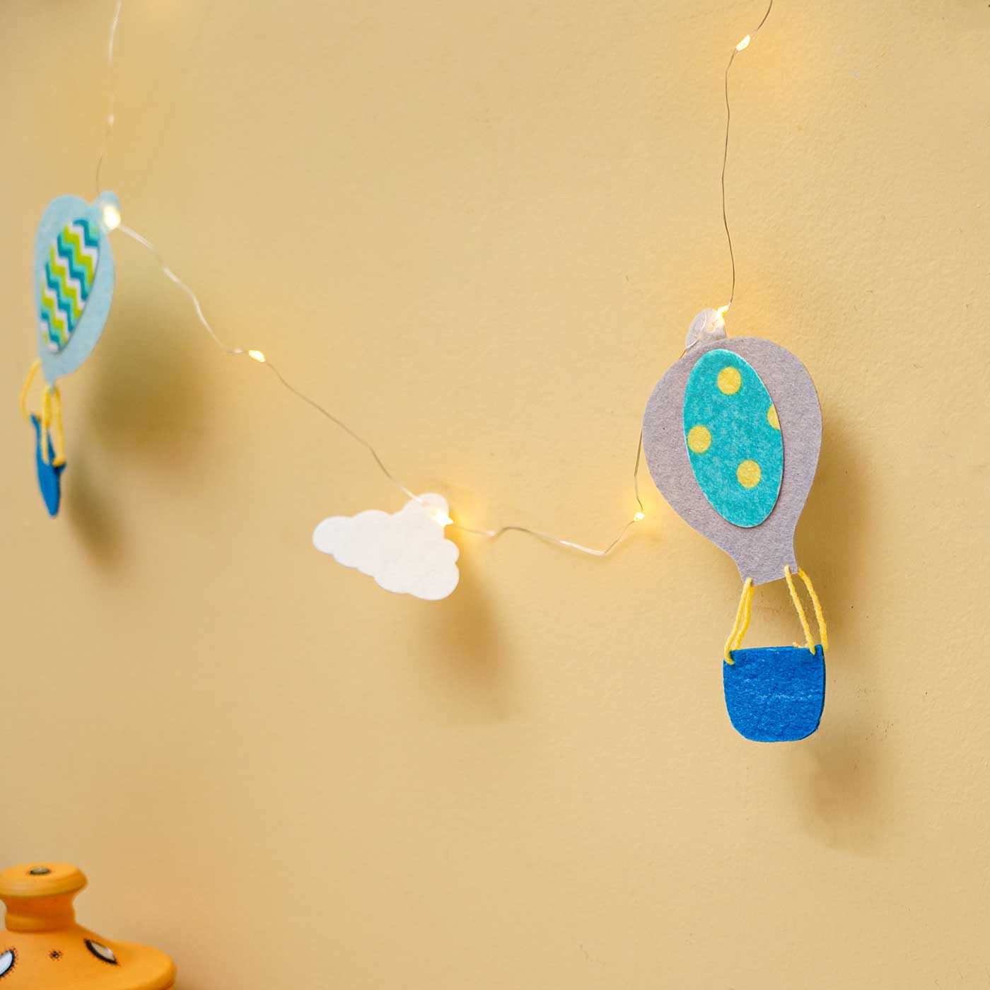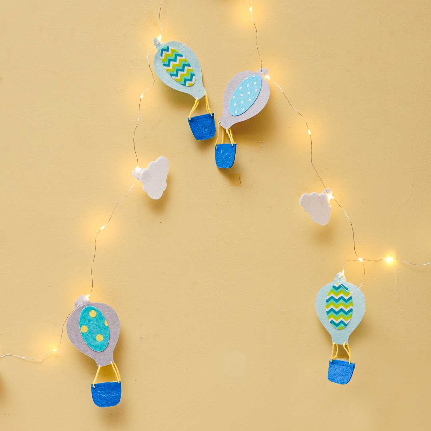 3m, 30 Bulbs | Handmade Blue & Grey Hot Air Balloon Felt LED Fairy Lig