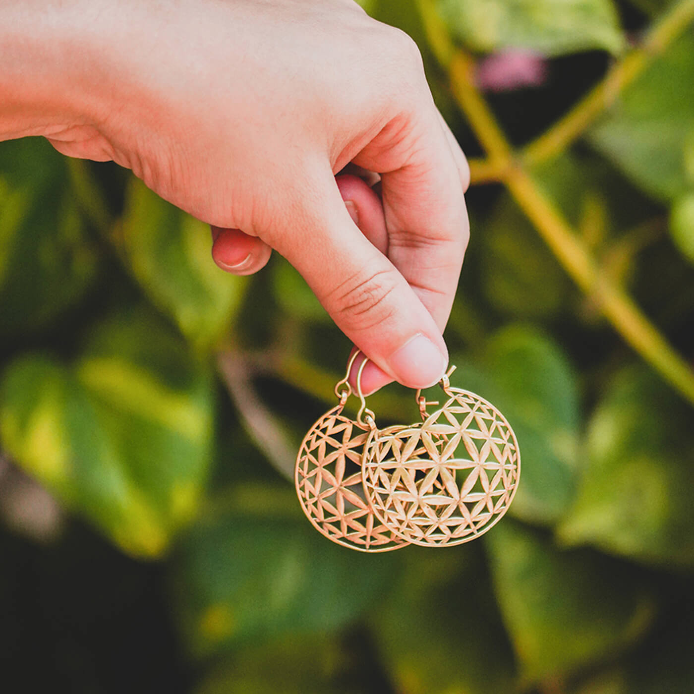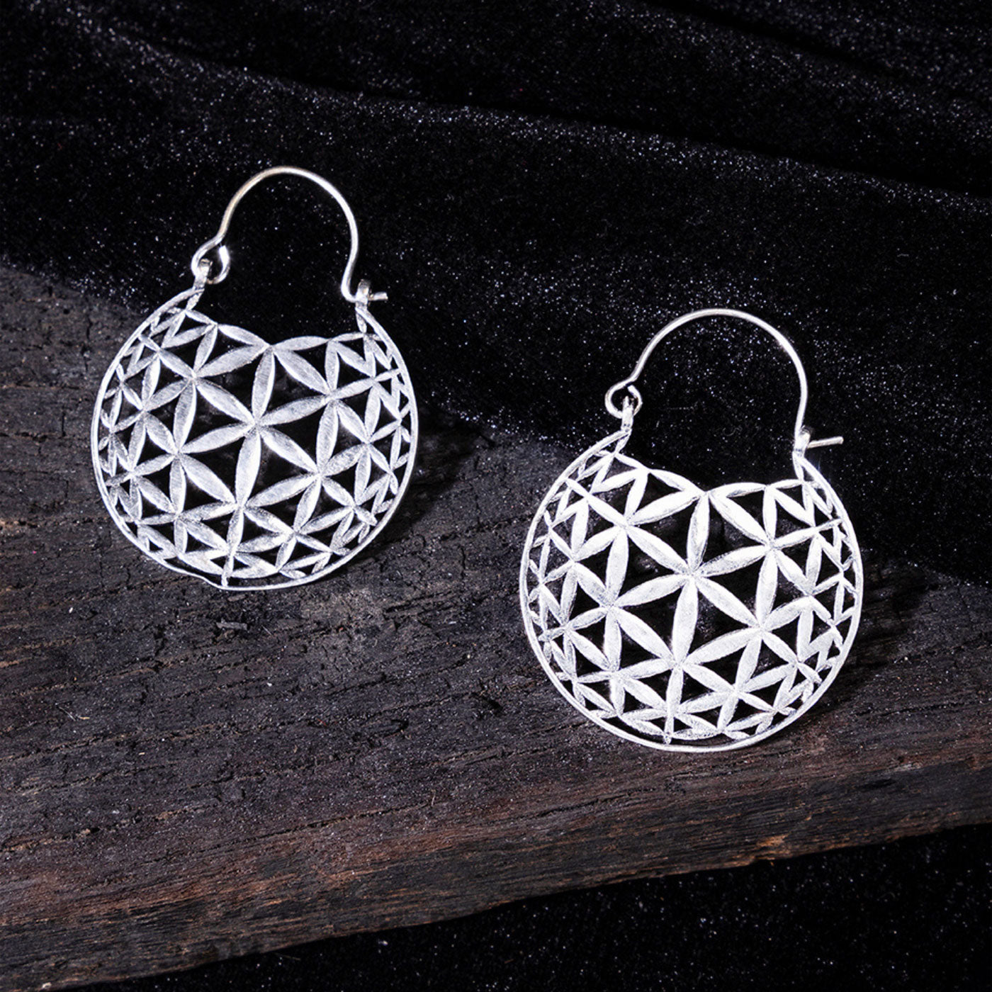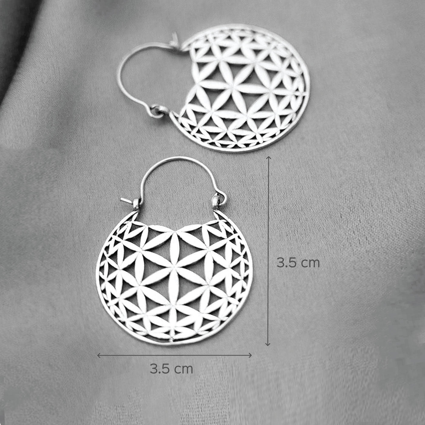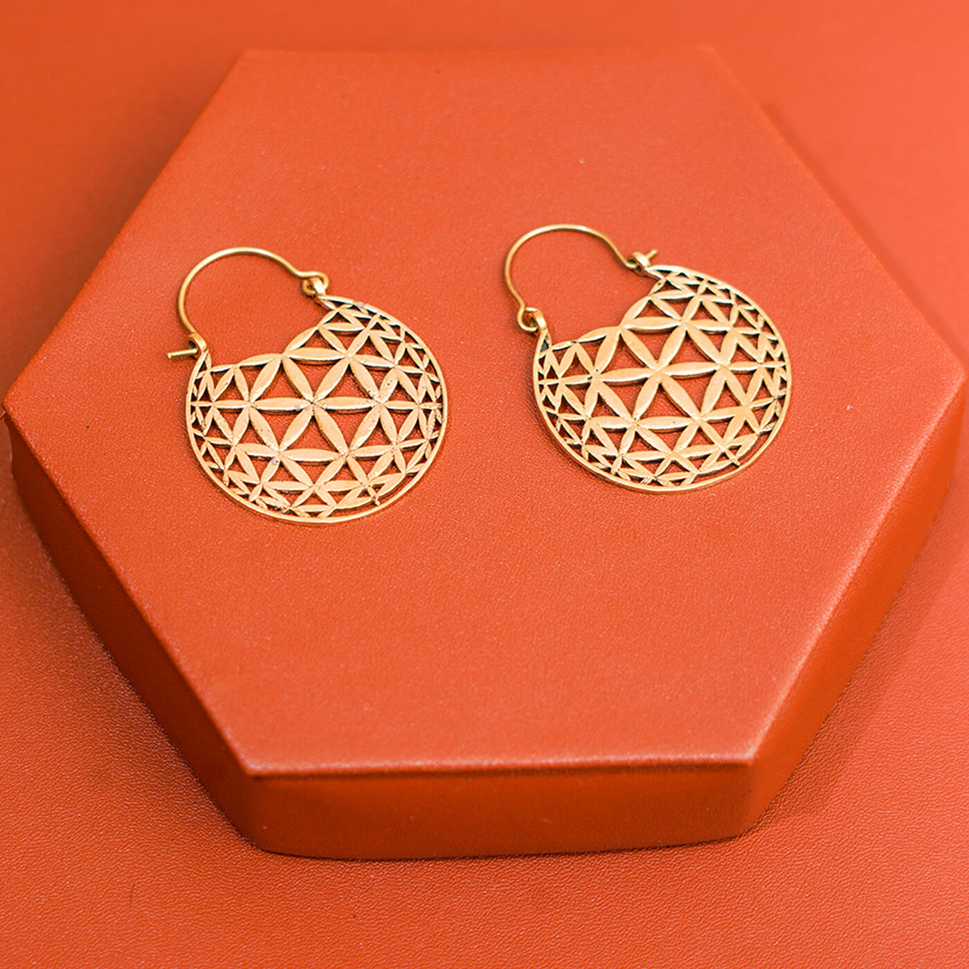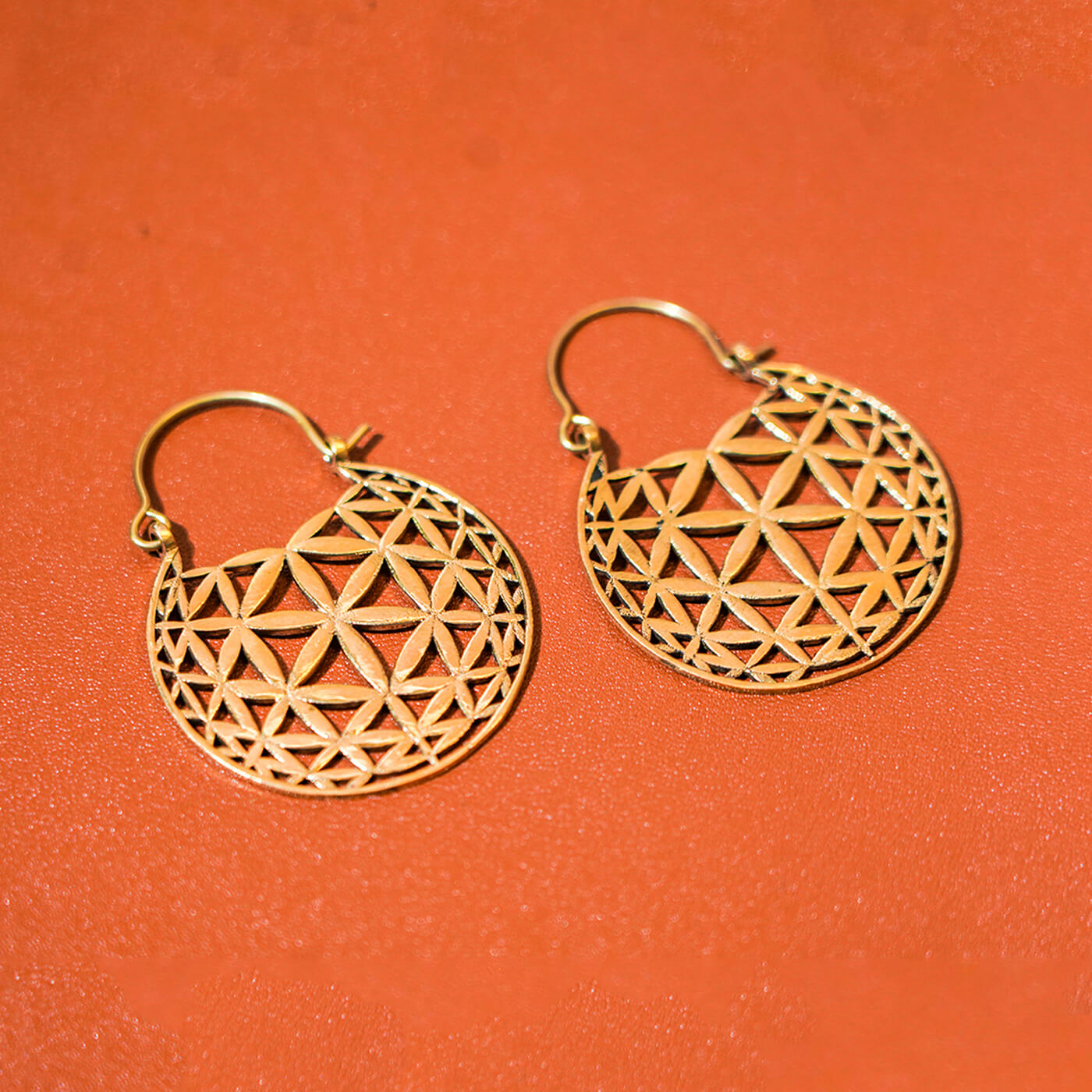 Handmade Brass Modern Hoop Earrings - Flower Bloom Pattern