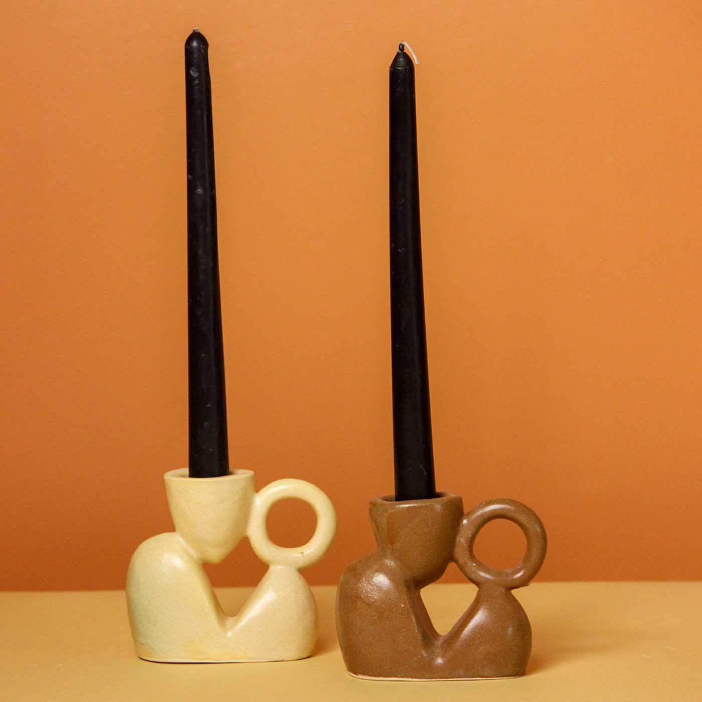 Handmade Brown & Beige Divine Halo Ceramic Pillar Candle Holder | Set