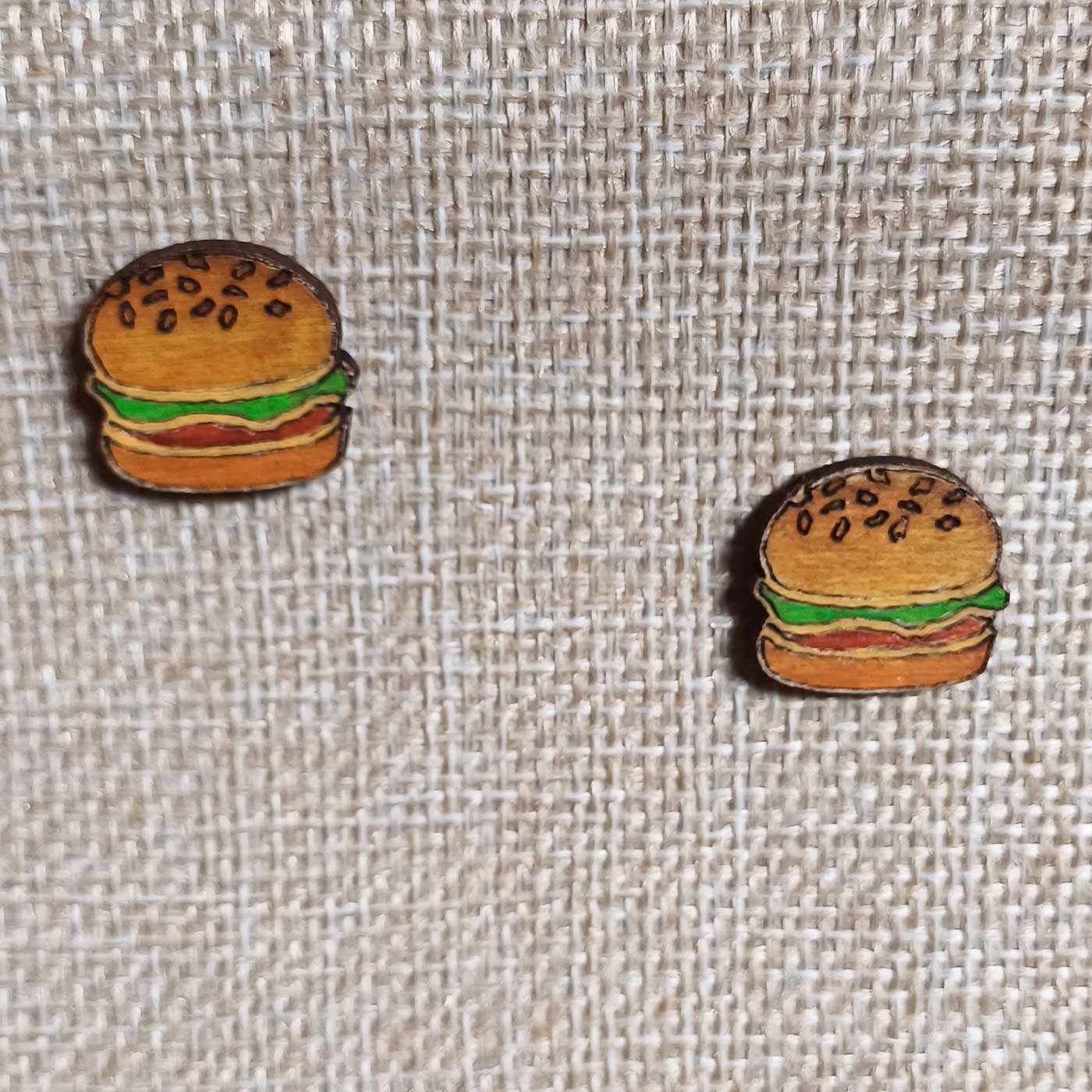 - Each stud is carefully handcrafted and painted to resemble a juicy little burger.
