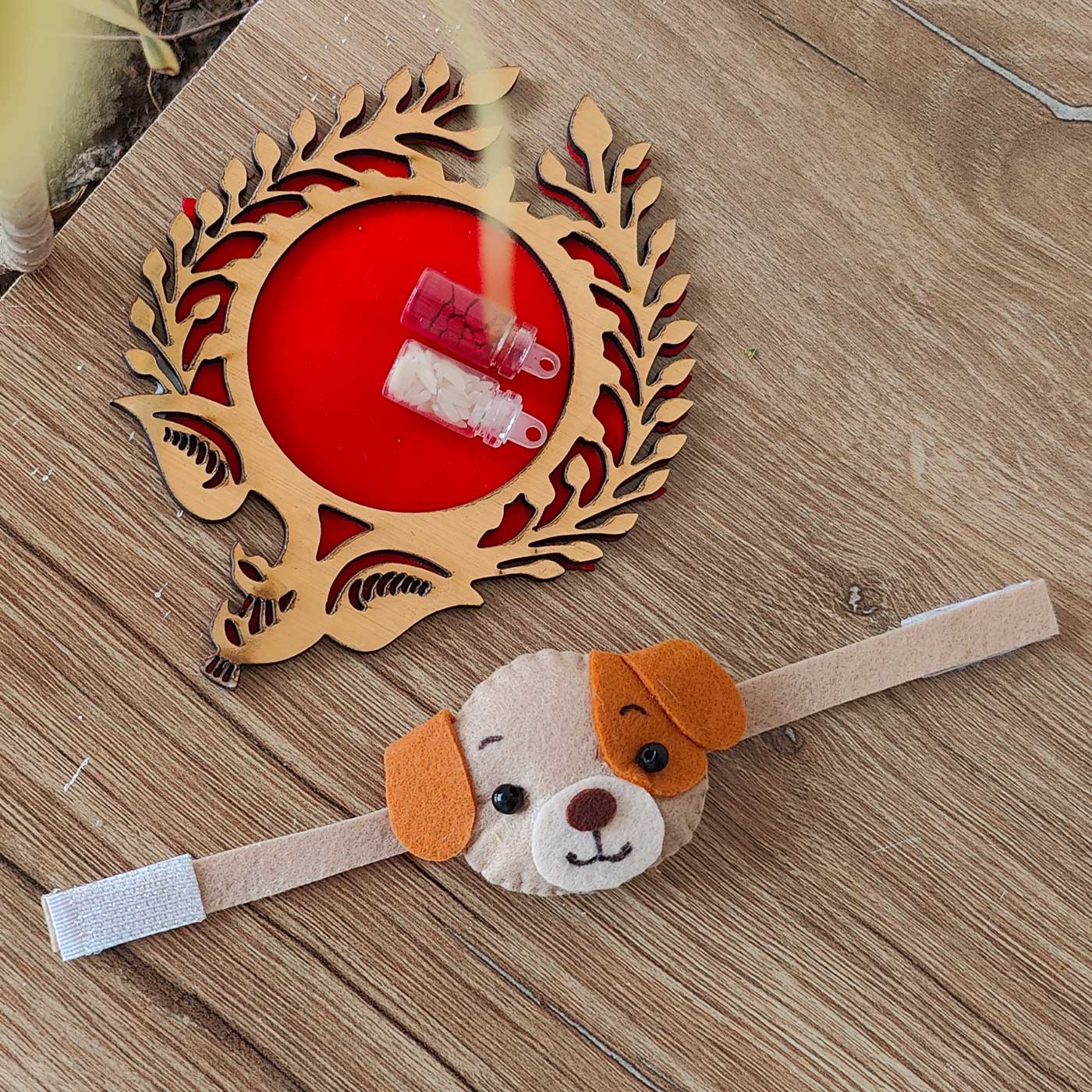 Handmade Dog Theme Felt Kids Rakhi With Roli Chawal