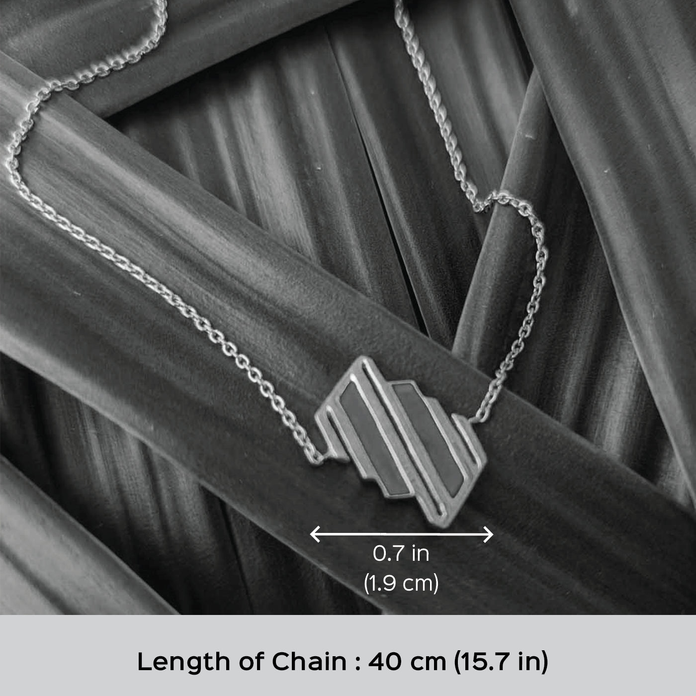 - The sleek pendant rests on a fine chain, bringing together minimalism and timeless grace.