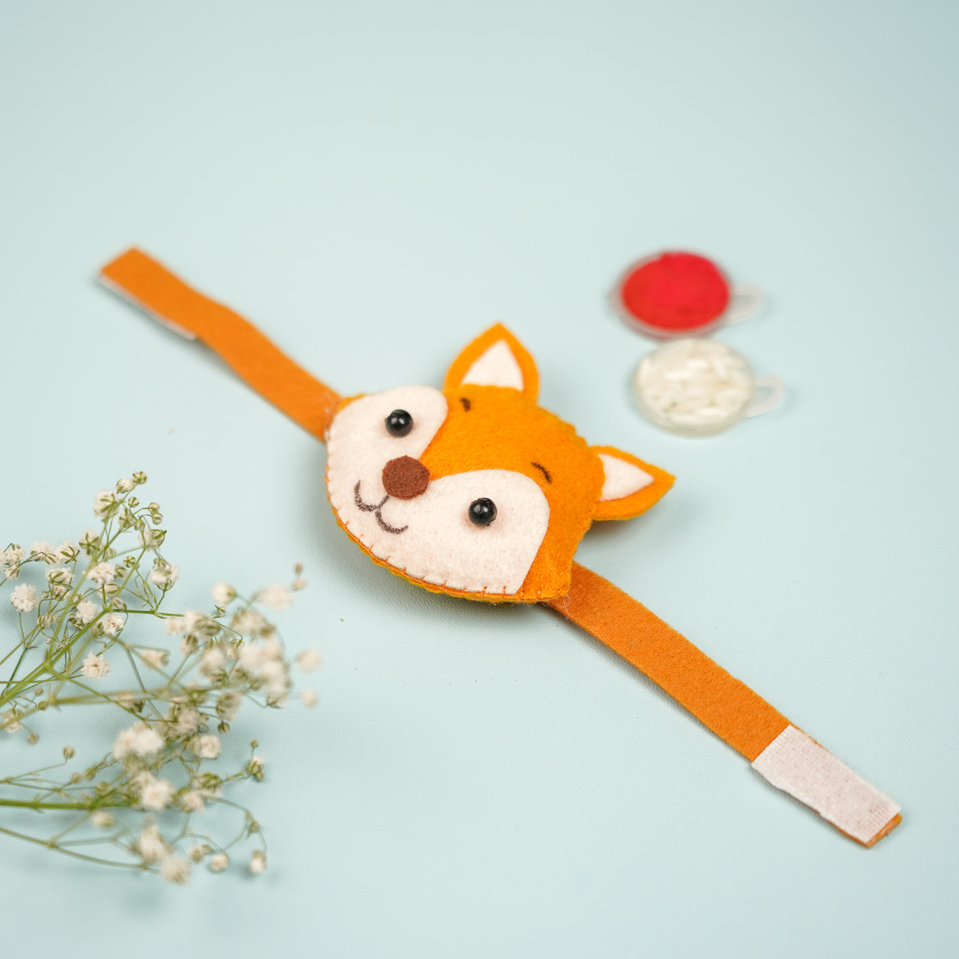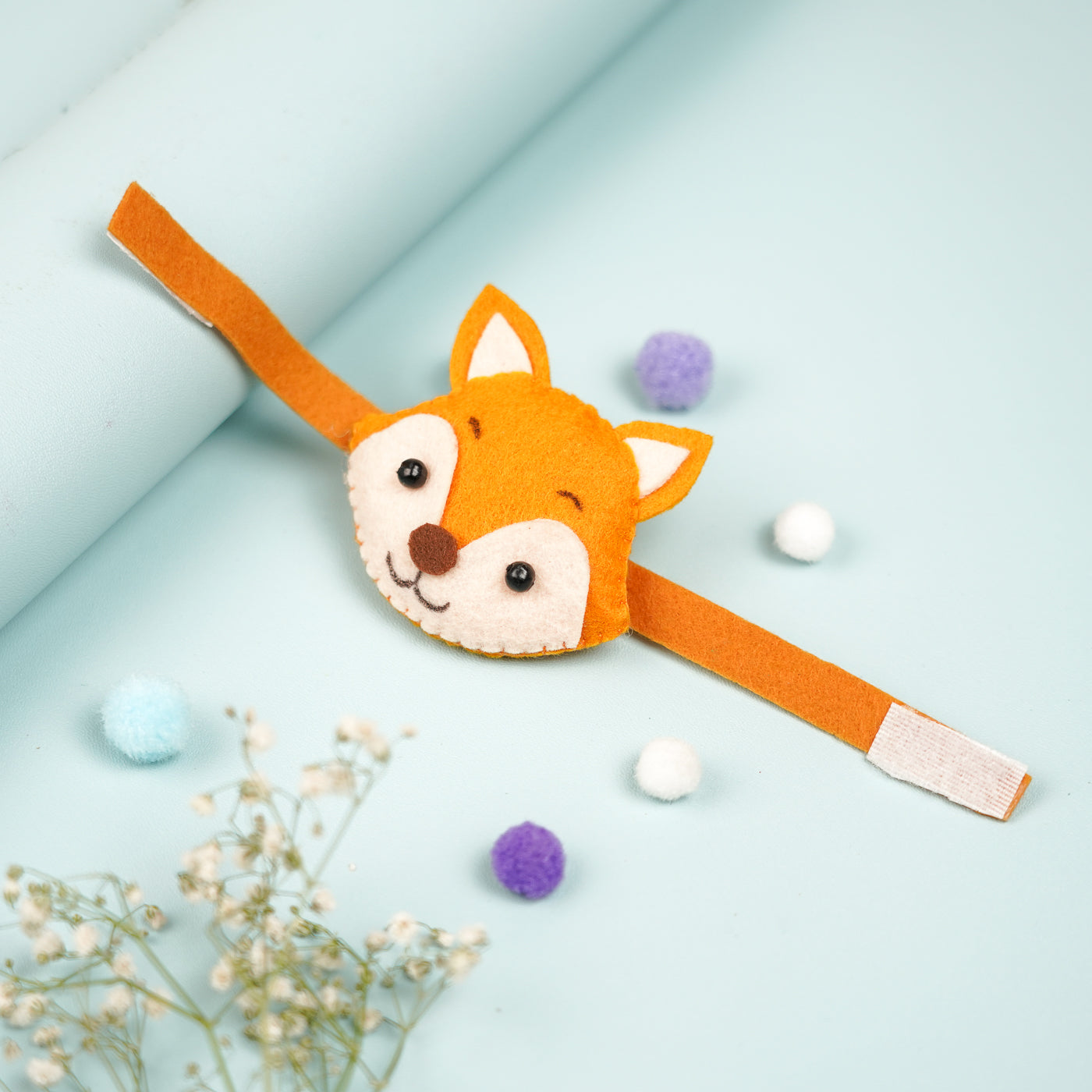 Handmade Fox Theme Felt Kids Rakhi With Roli Chawal