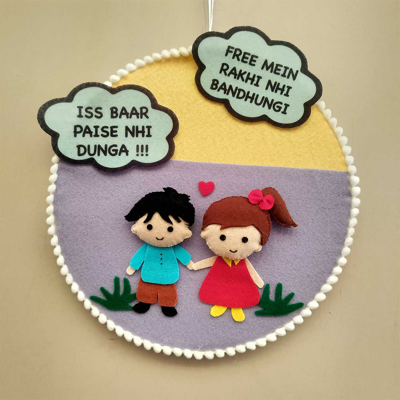 - Bring smiles to your Raksha Bandhan with this funny felt wall hanging.
