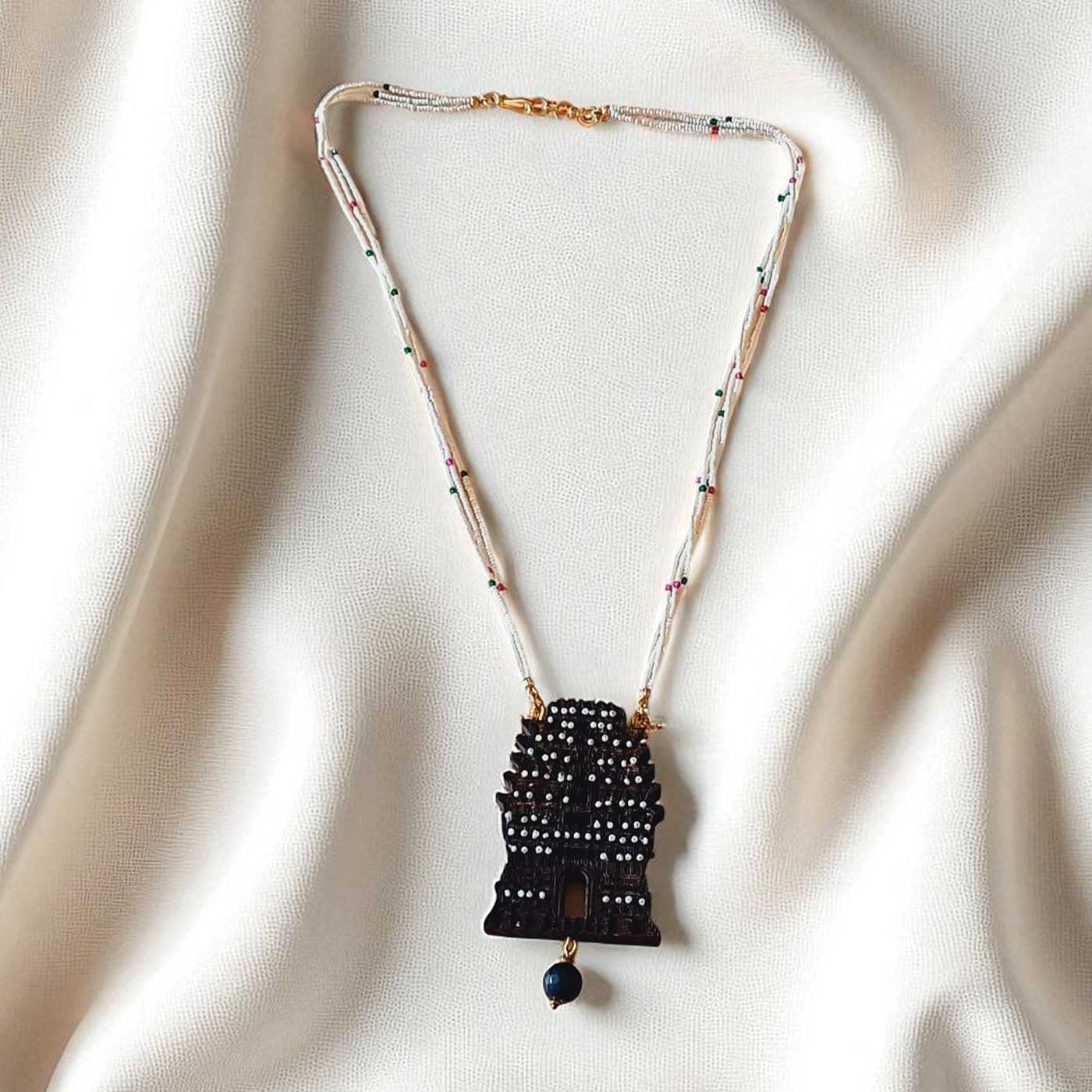 - Inspired by South India’s sacred temple architecture, the Gopuram Temple Necklace is a handcrafted wooden piece with spiritual elegance.