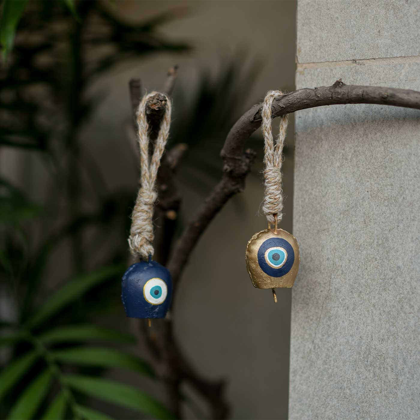 • Invite protection, positivity, and artisanal charm into your home with Scrapshala’s Guardian Evil Eye Bells.