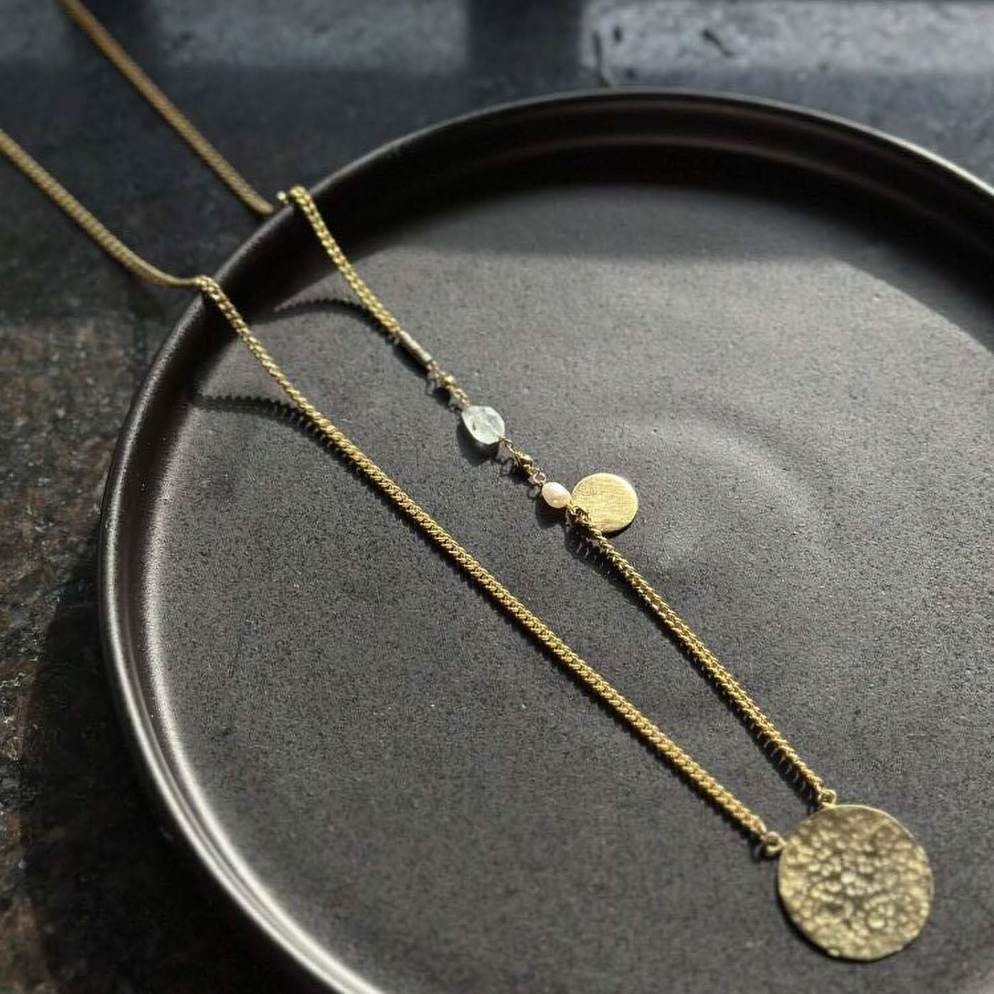 - Bring subtle elegance to your festive wardrobe with this handcrafted hammered disc necklace.