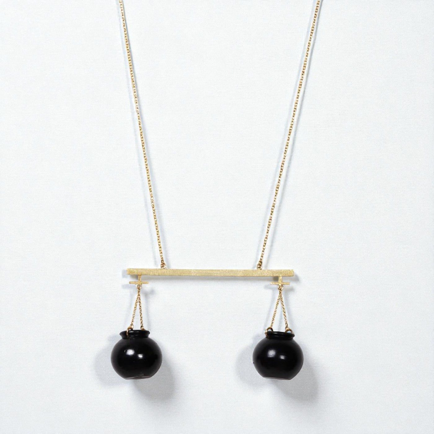 - Drawing inspiration from the festive spirit of Dahi-Handi, this necklace turns a traditional earthen pot into a modern wearable sculpture.