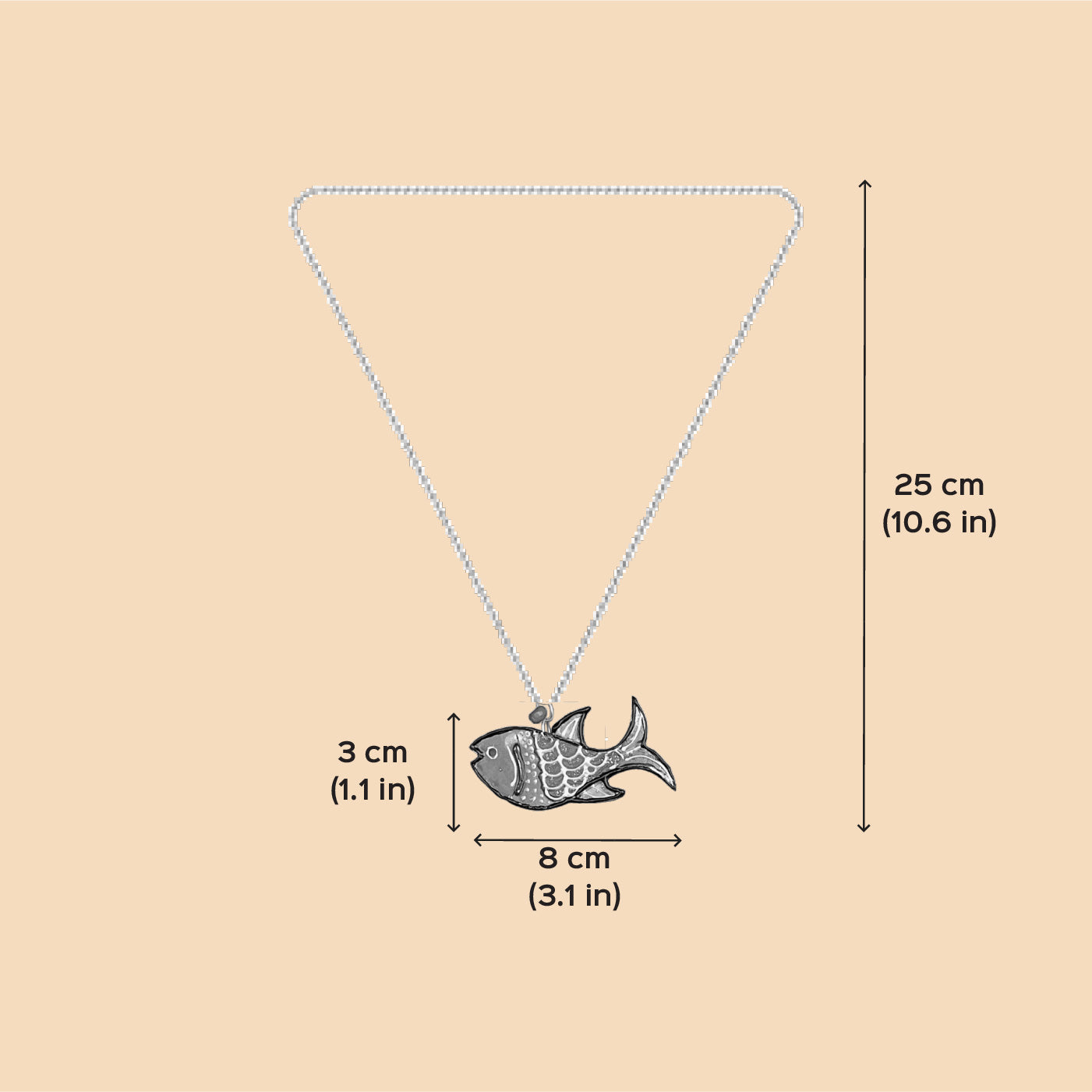 - Add a splash of playfulness to your outfit with this bright red fish Necklace.
