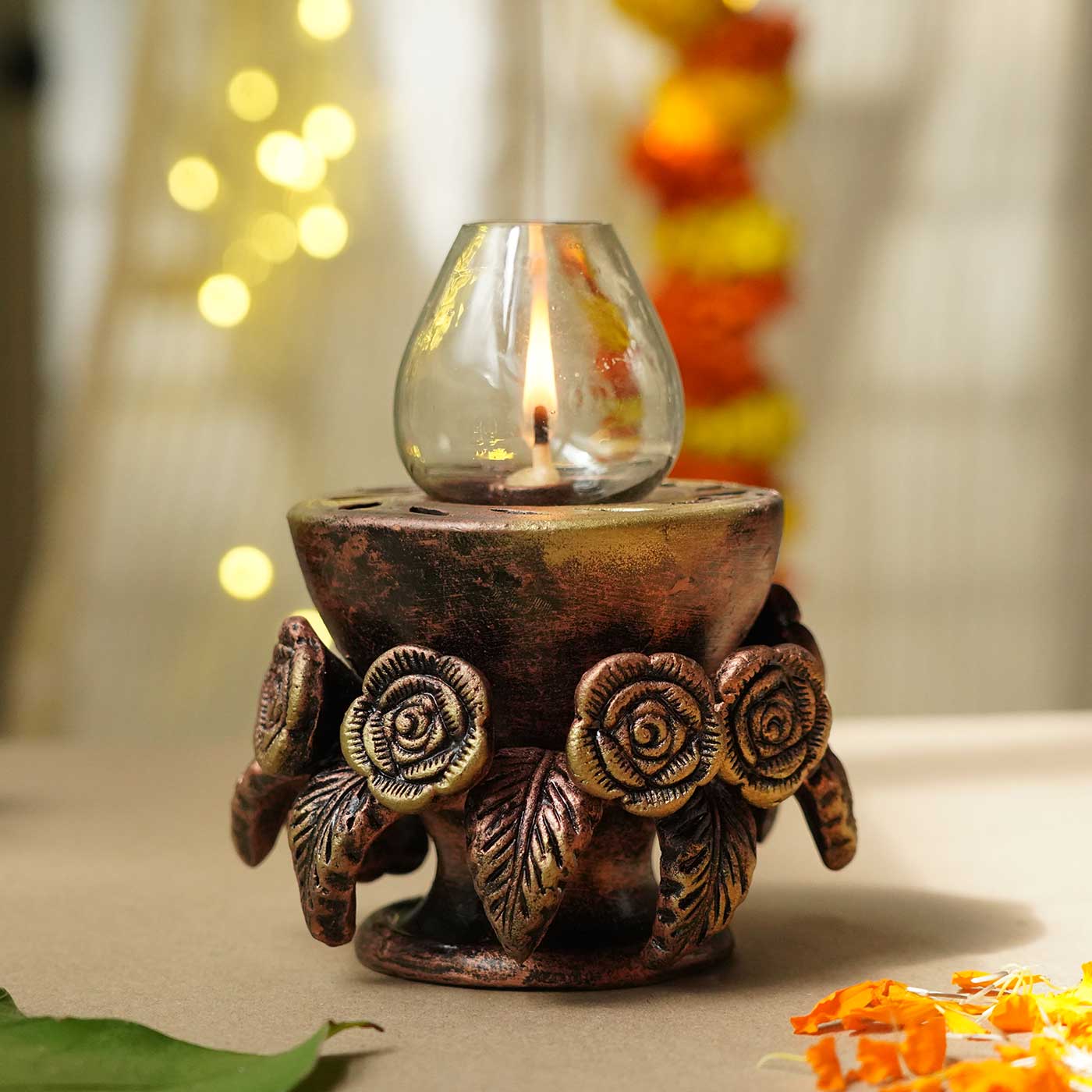 - This handmade terracotta Akhand Diya embodies the perfect blend of tradition and elegance.