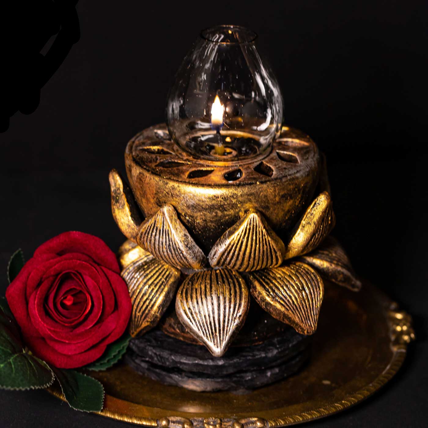 - It is designed not only to hold oil and wicks but to add a ceremonial grandeur to your rituals and decor!