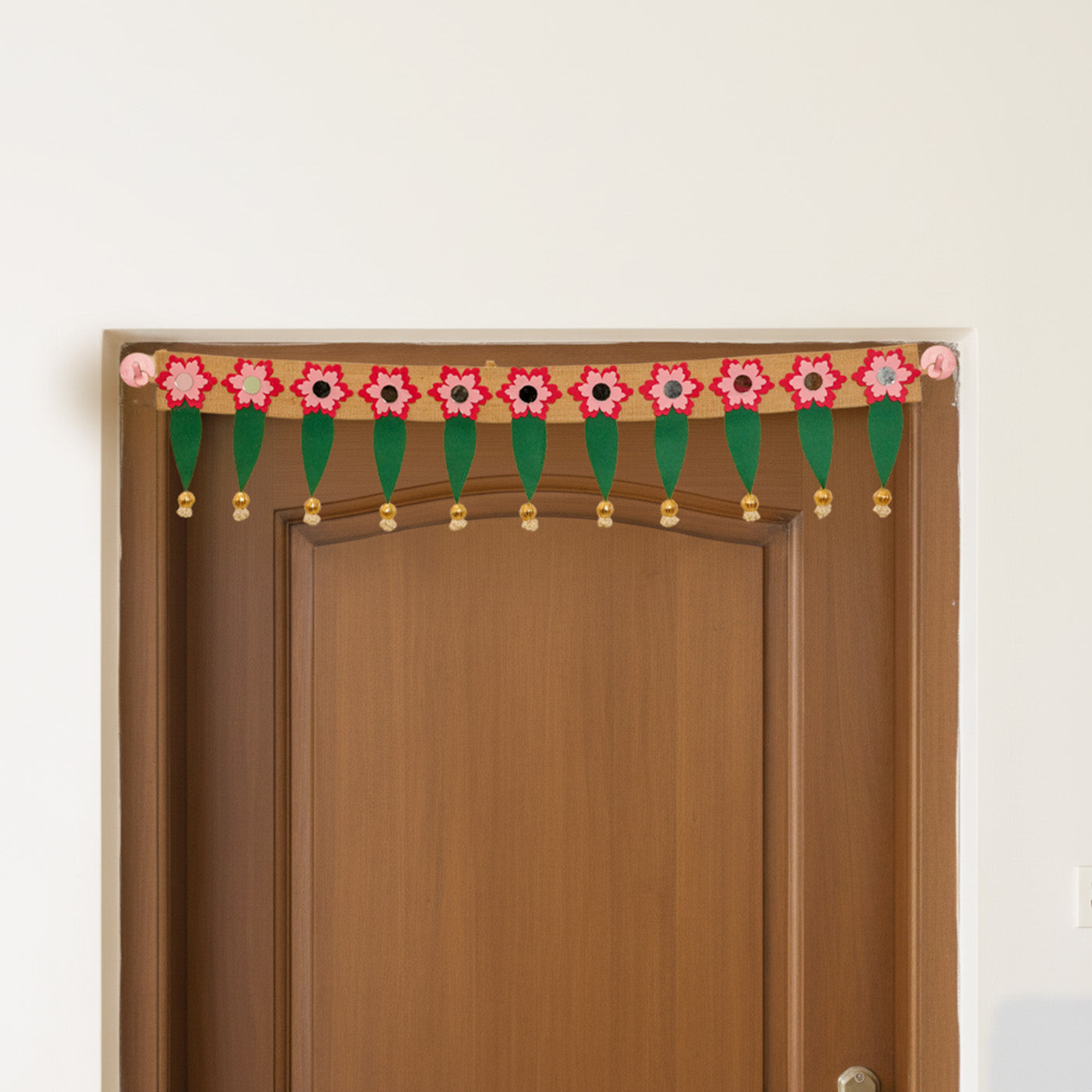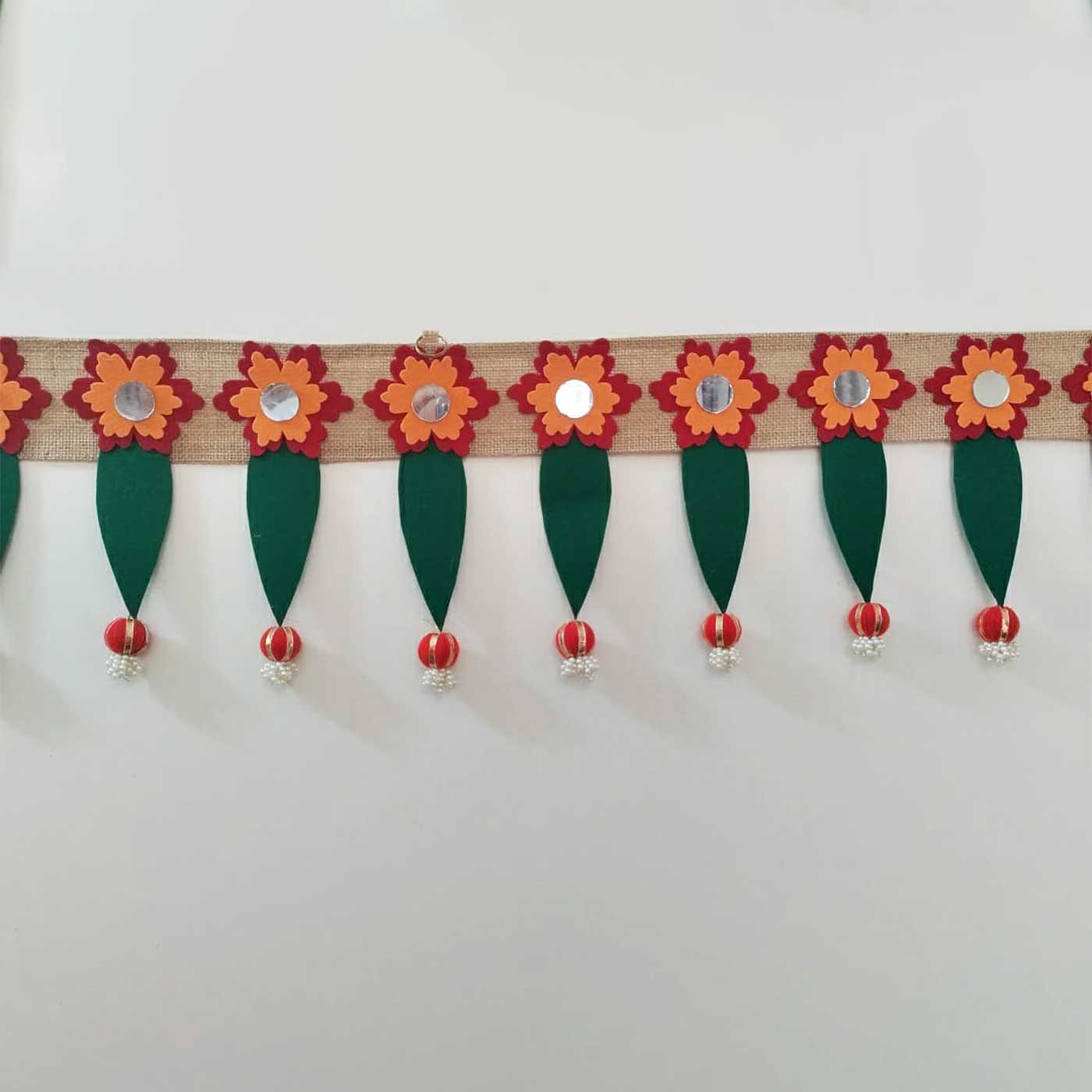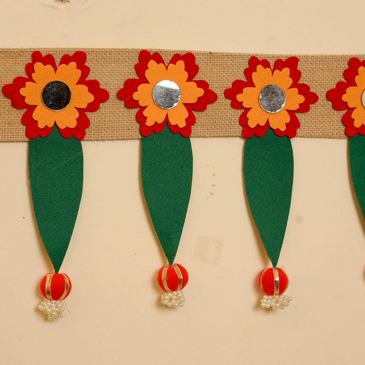 - Featuring elegant Ashok Patta-inspired felt flowers and jute base, it adds a handcrafted artisanal touch to your entryway or mandir.