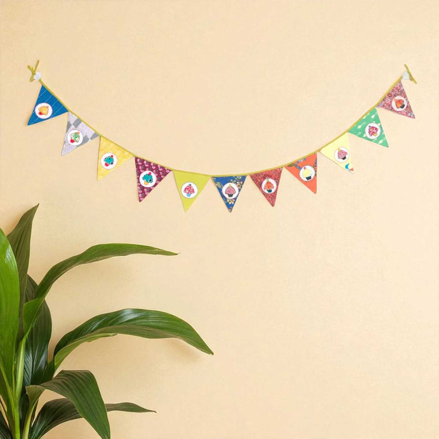 - Bring a burst of fun to your space with this multicolored cupcake-themed bunting, handcrafted from upcycled fabrics.
