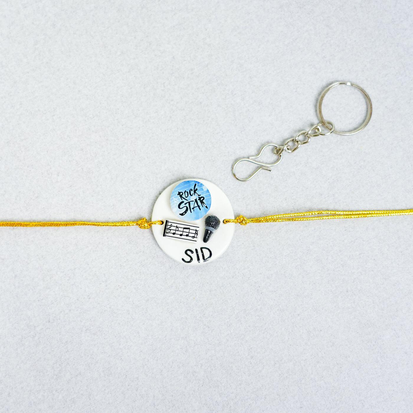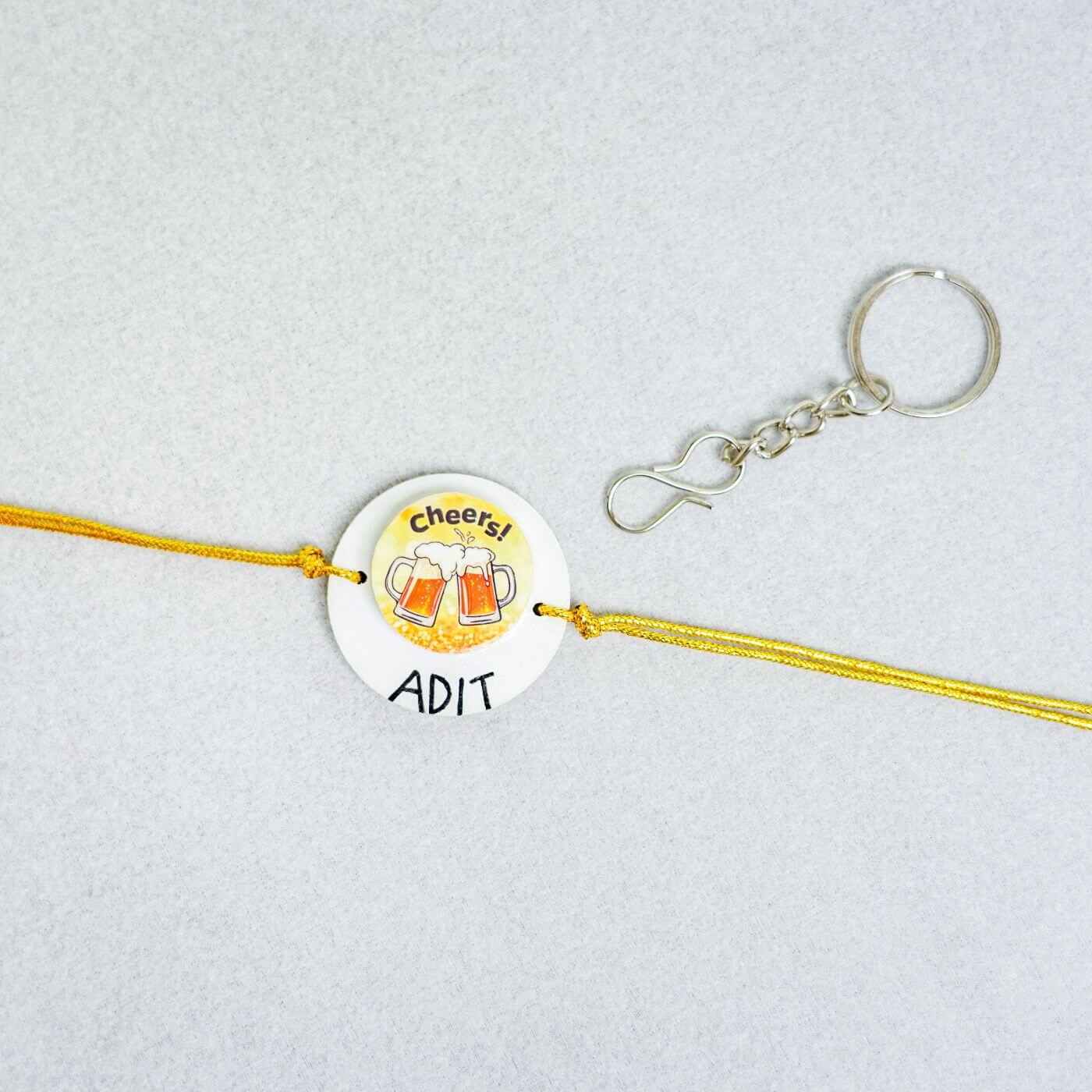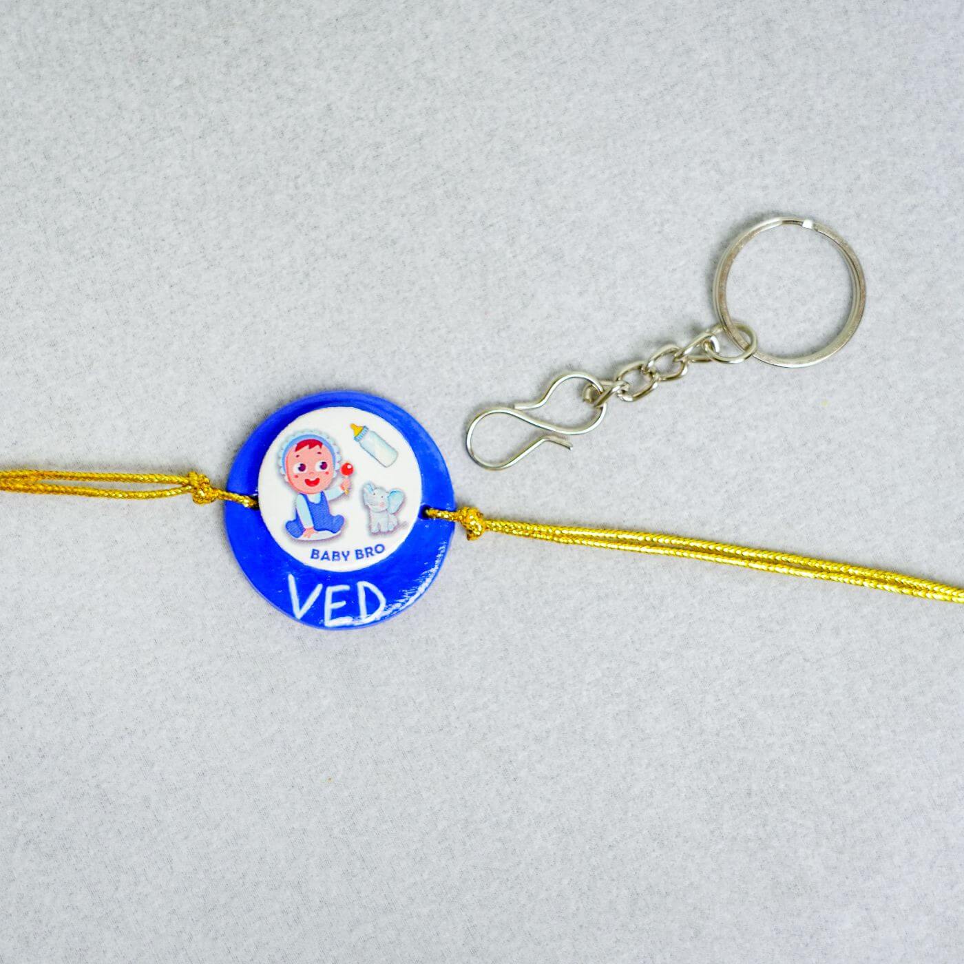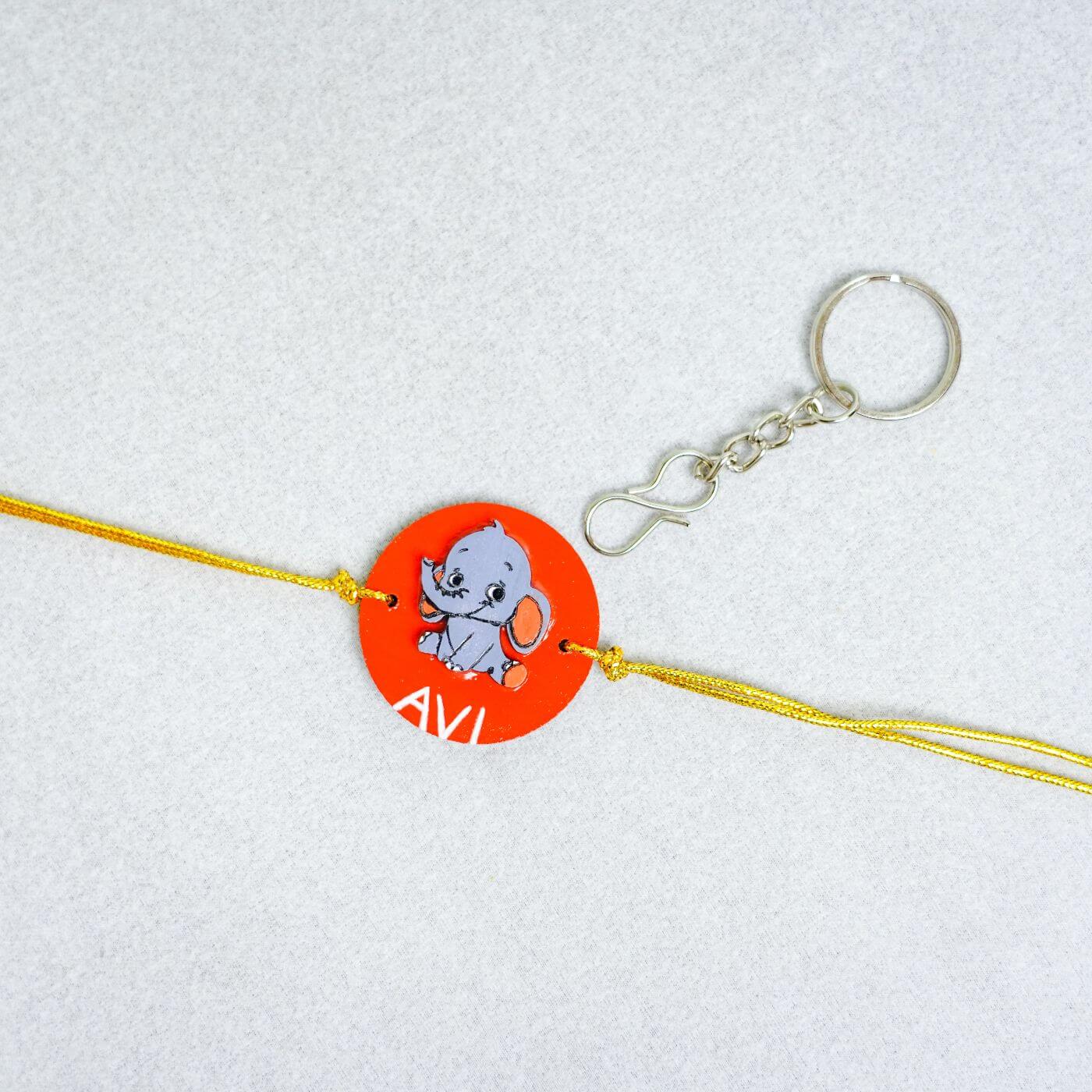 Handmade Personalized Rakhi cum Keychain With Roli Chawal