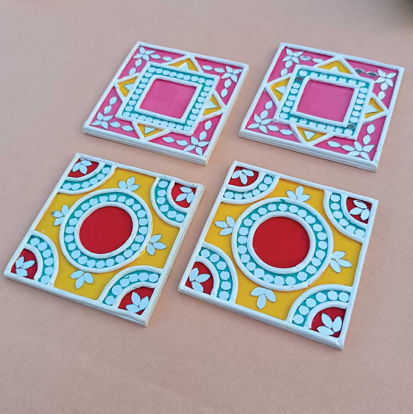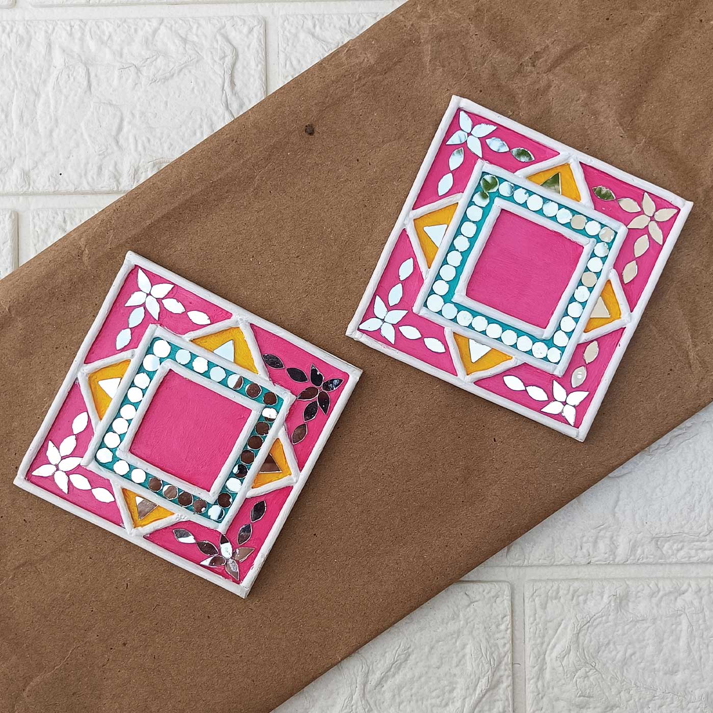 - Elevate your space with the vibrant heritage of Gujarat and modern elegance with this exquisite set of Lippan art tealight holders.