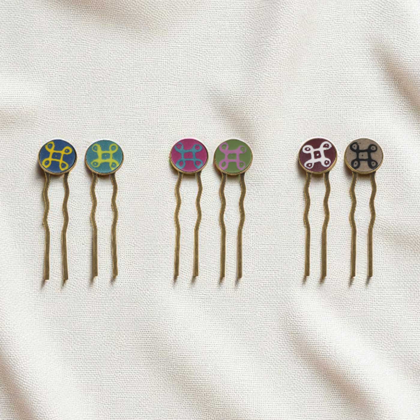 - Inspired by the ancient Tamil art of Kolams, these hair pins capture the intricate, auspicious patterns traditionally drawn at dawn.