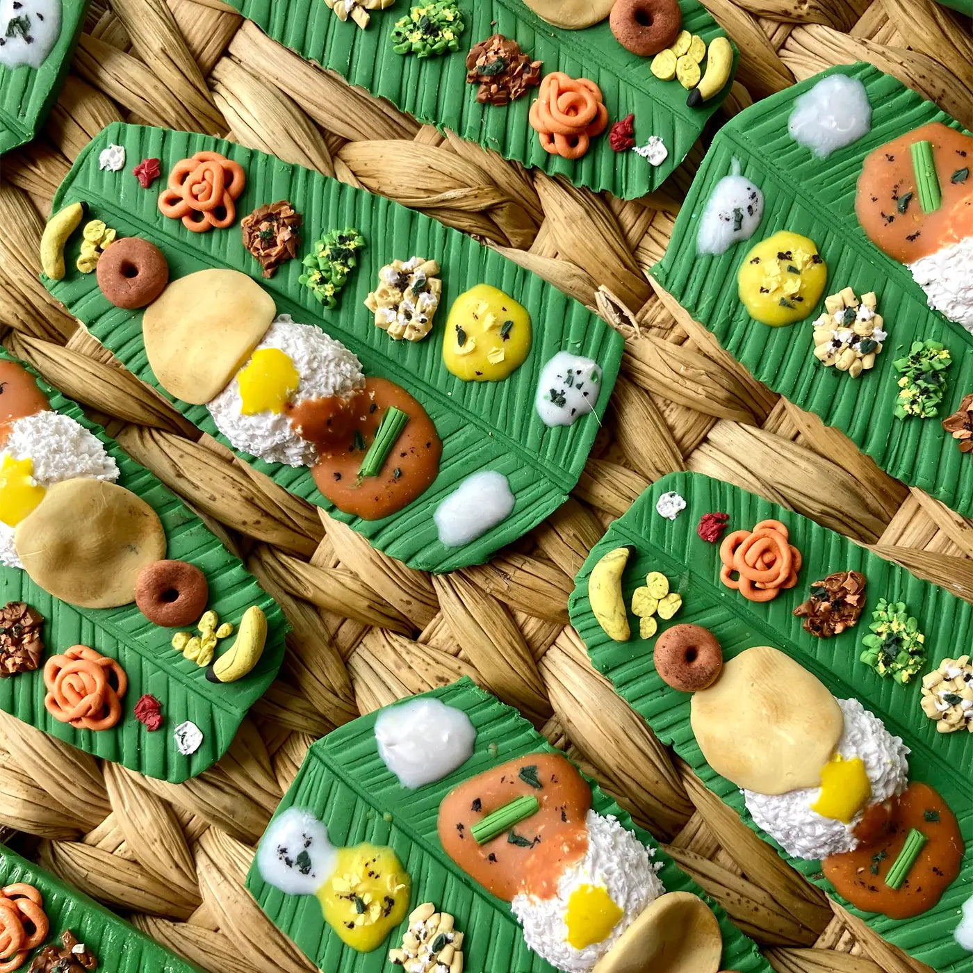 - Get ready to drool every time you grab your keys! This mouth-watering mini spread is almost too cute to eat. Complete with a heaping pile of rice topped with ghee, piping hot sambar, and your choice of curries - beans, potato, vazhaithandu, or pachadi. Don't forget the curd rice finale and that sweet, sweet jangiri to end on the perfect note!