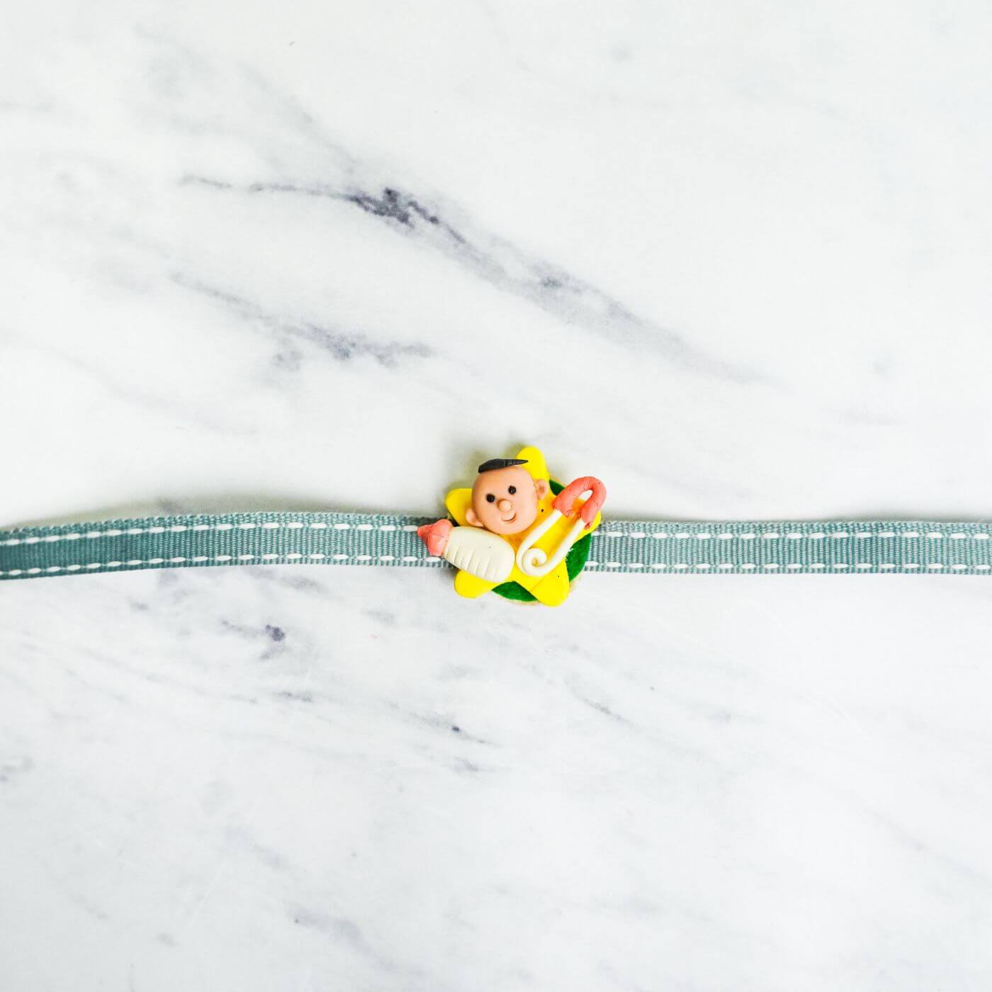 - Adorned with quirky theme based models in cold Porcelain clay, this rakhi is a vibrant and charming gift for your sibling.