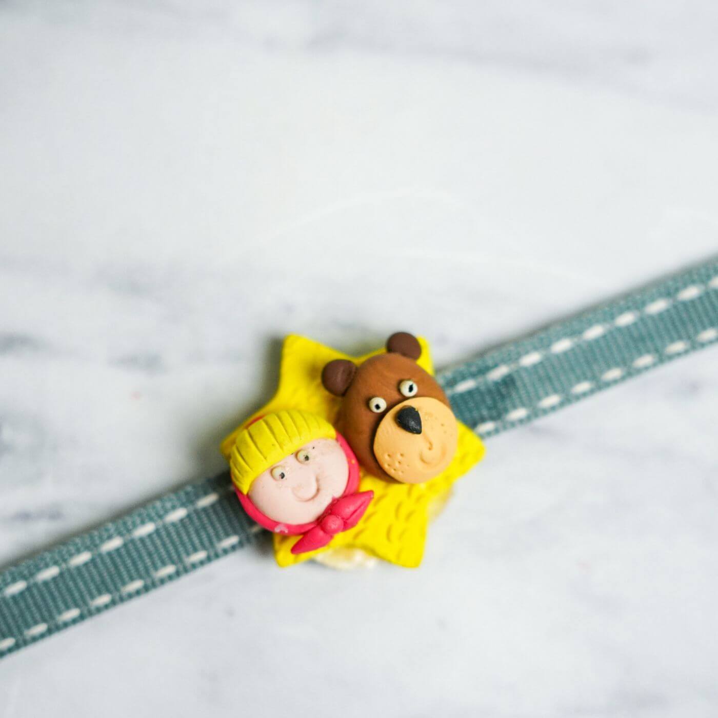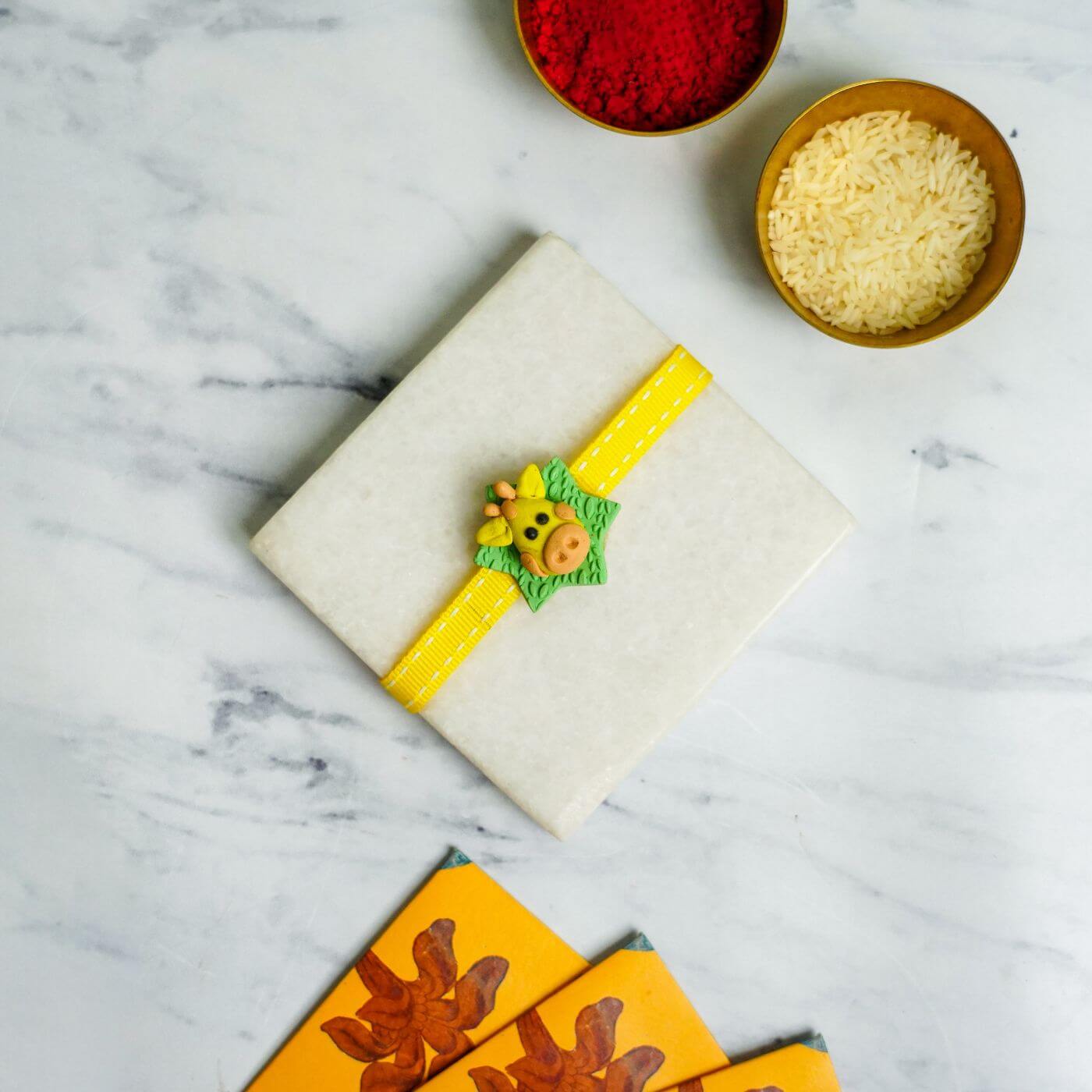 - This year, celebrate Raksha Bandhan with this handmade porcelain clay themed rakhi.