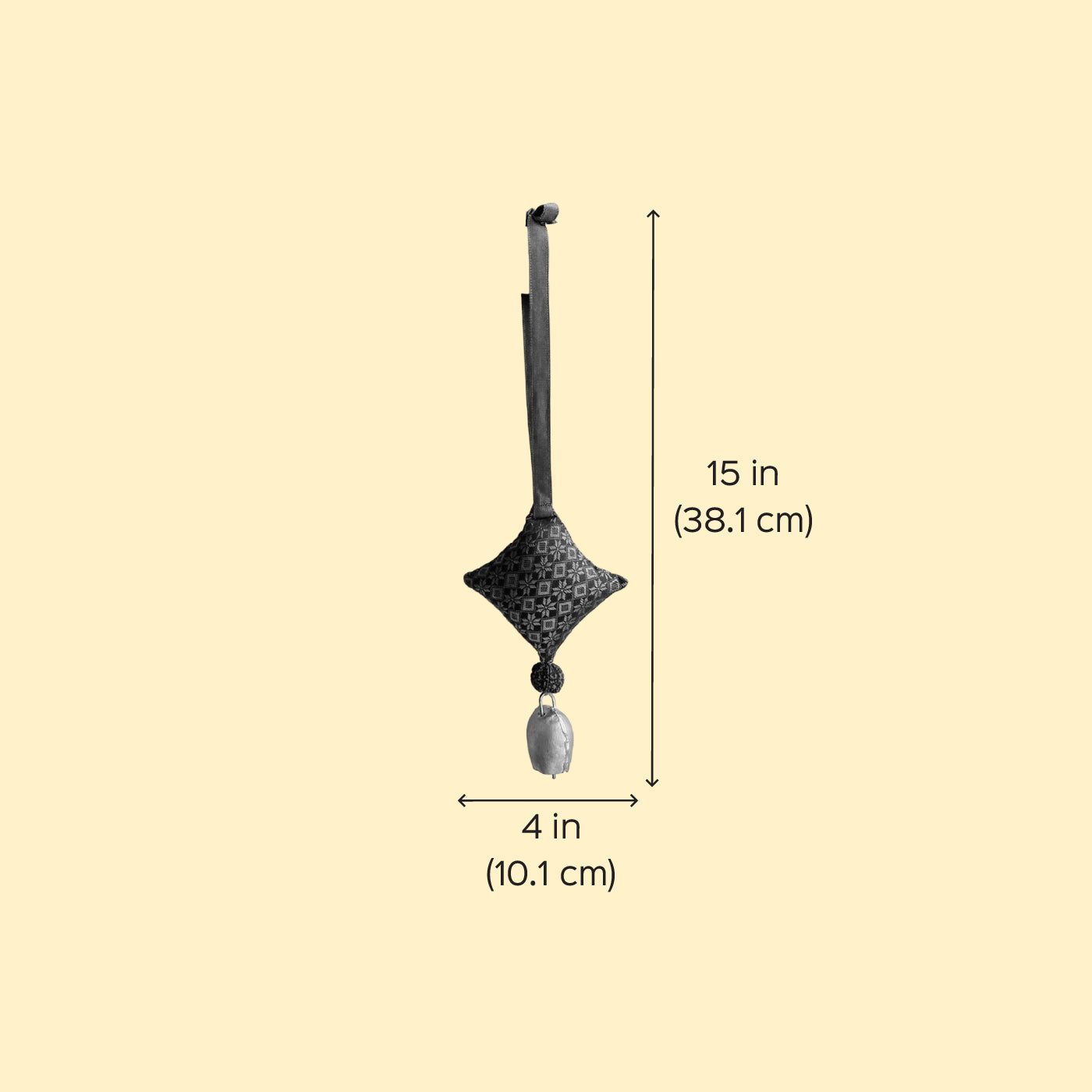 - Strung with Rudraksha beads and finished with small handcrafted brass bells.