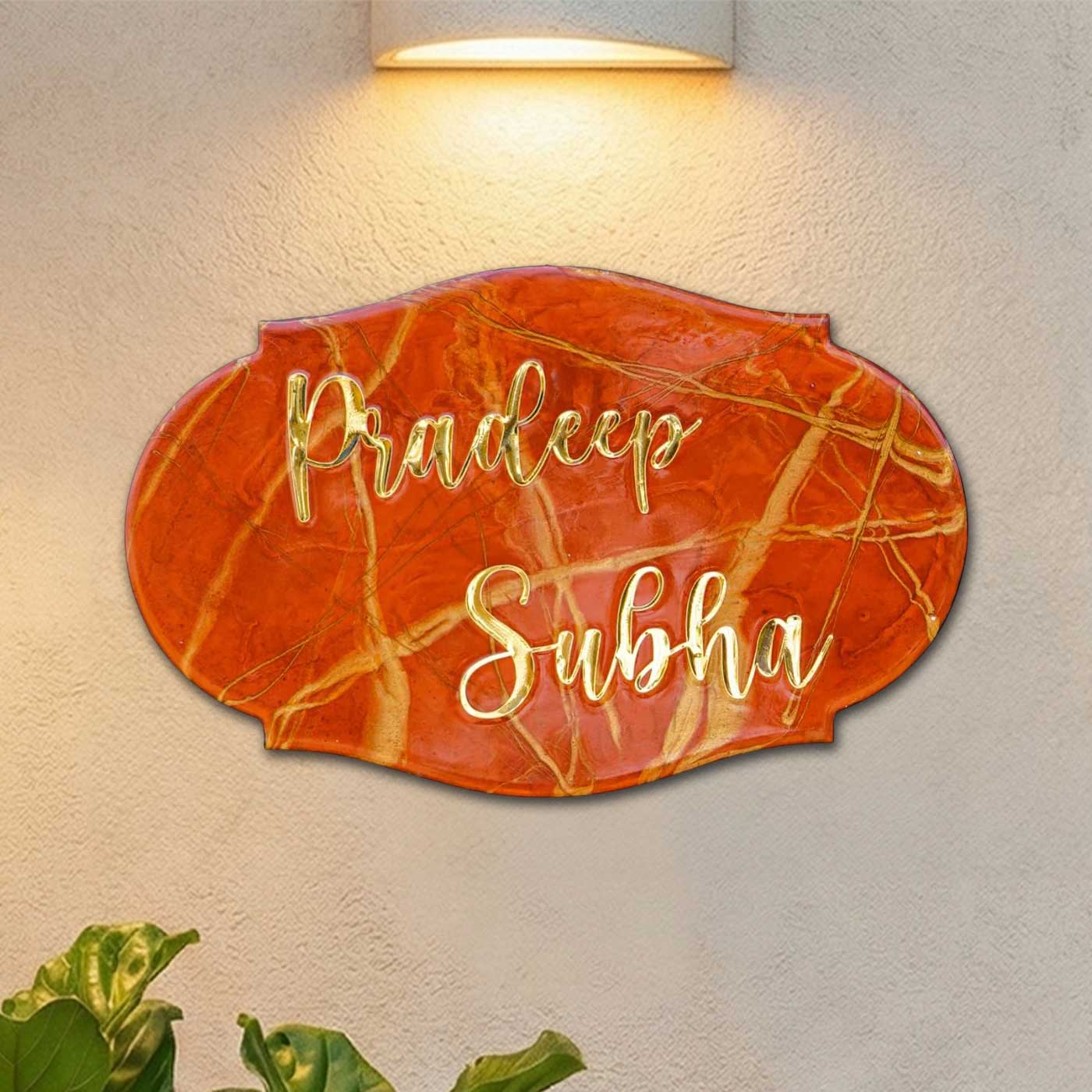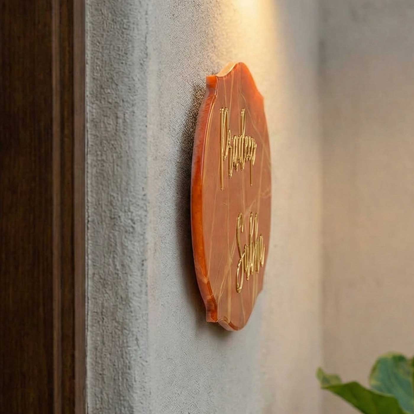 - Elevate the entrance of your home with this handcrafted resin nameplate, made on a durable MDF base.