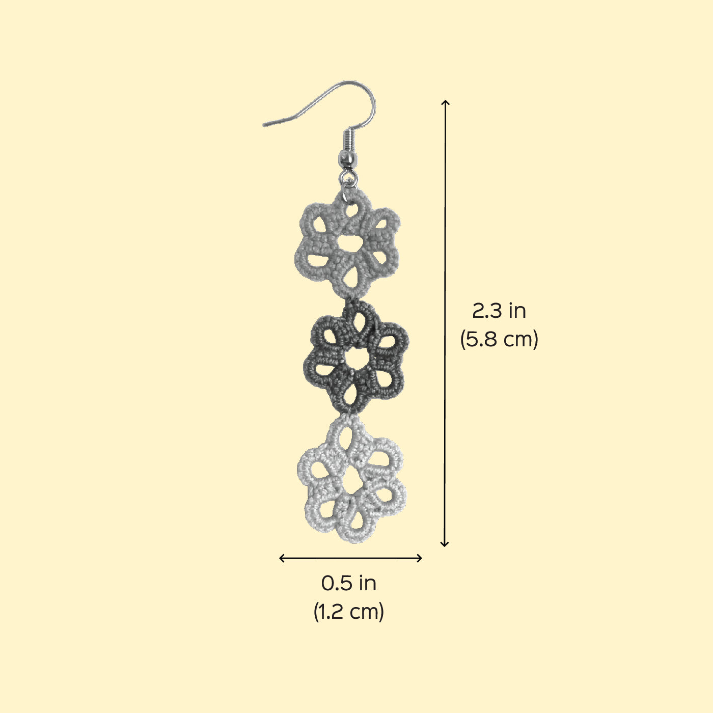 - Lovingly handcrafted with the age-old shuttle tatting technique, these earrings feature a trio of delicate floral motifs.