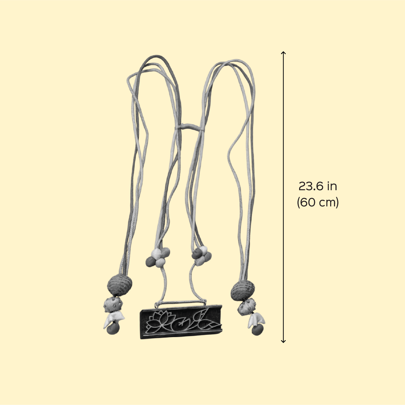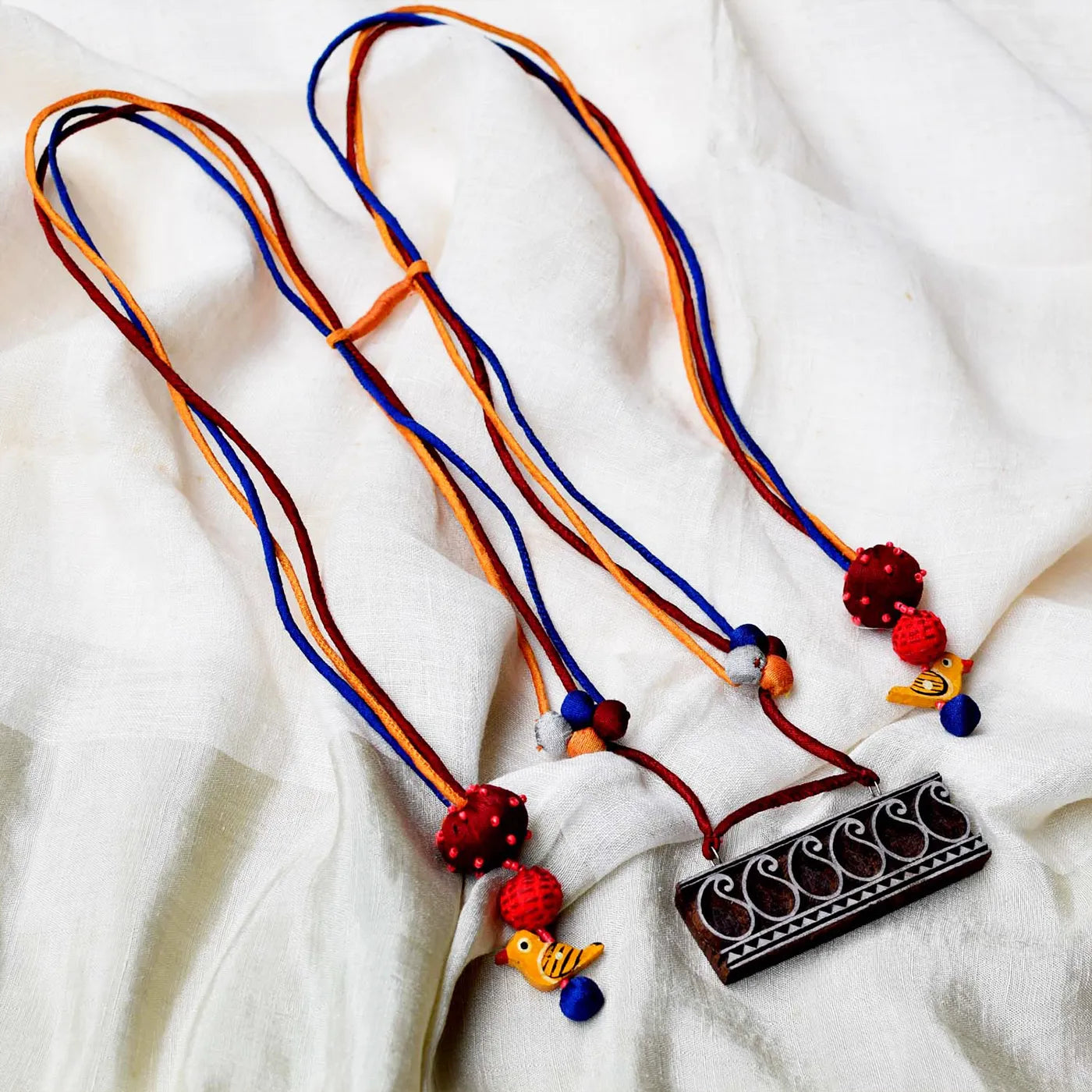 - The Kavita necklace blends textile craft with traditional wooden block carving.