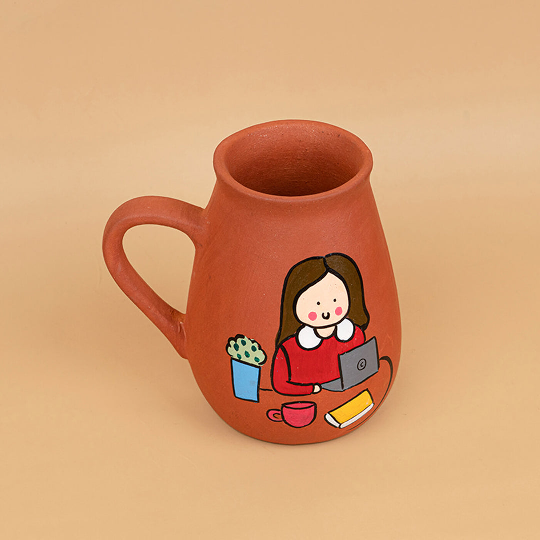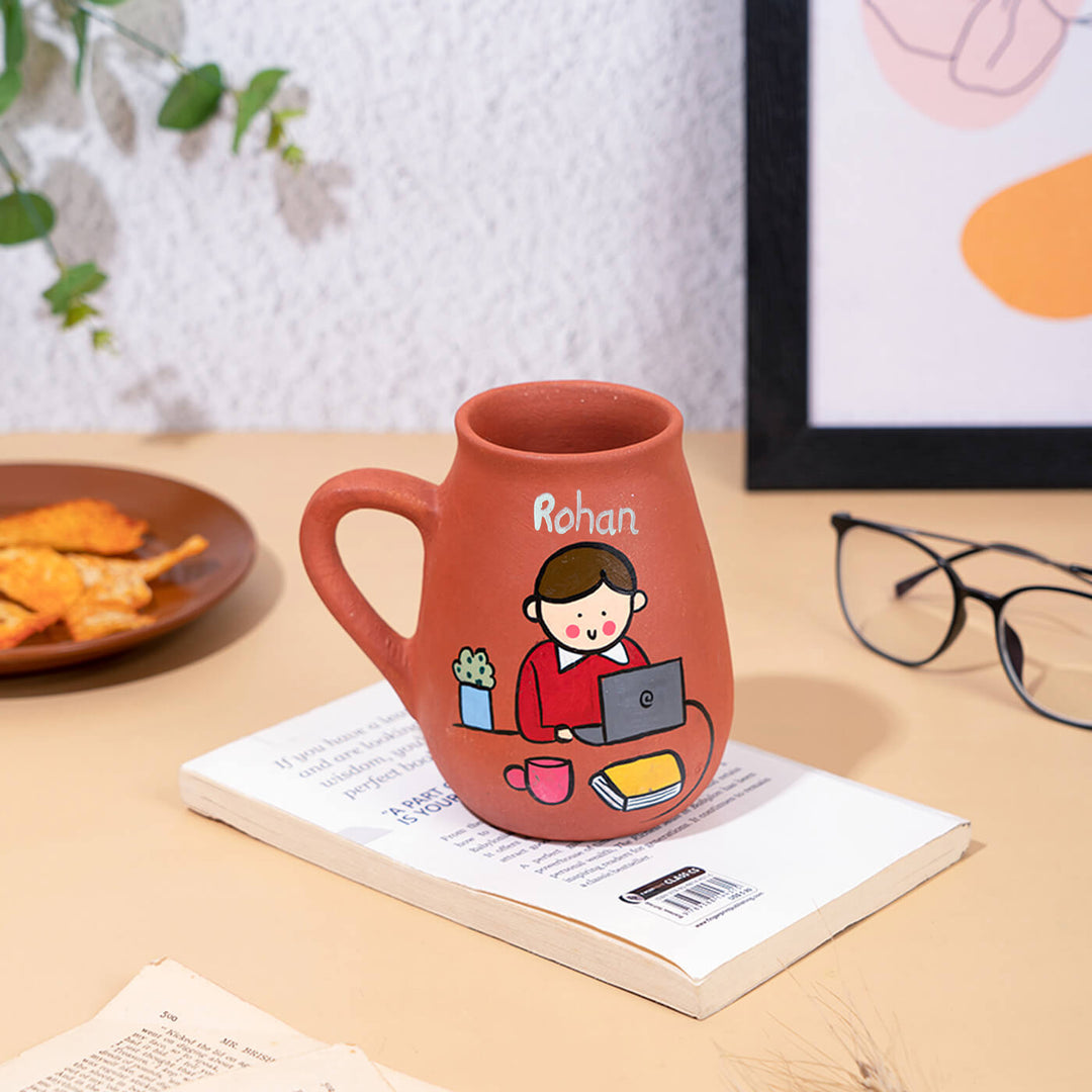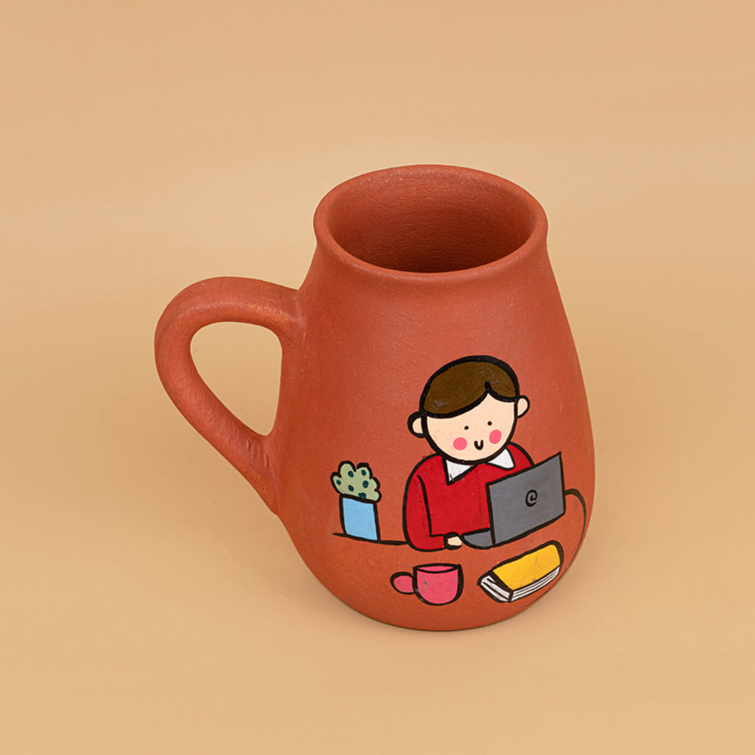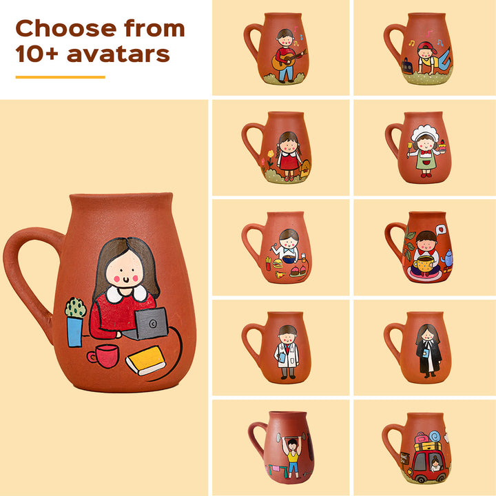 Handpainted Terracotta Mug With Working Professionals Avatar Illustrations
