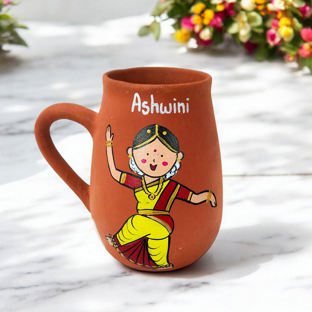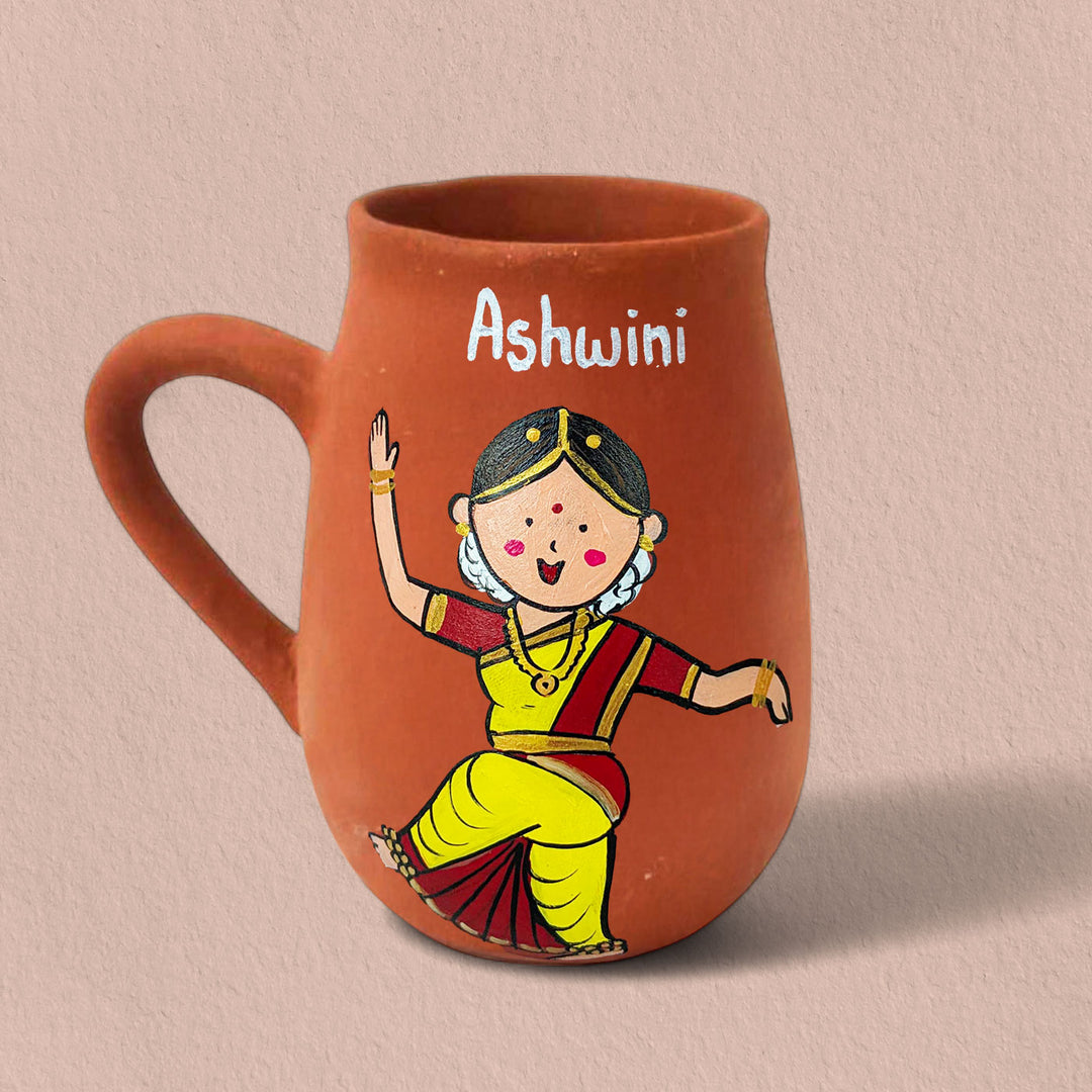 Handpainted Terracotta Mug With Dancer Avatar Illustrations