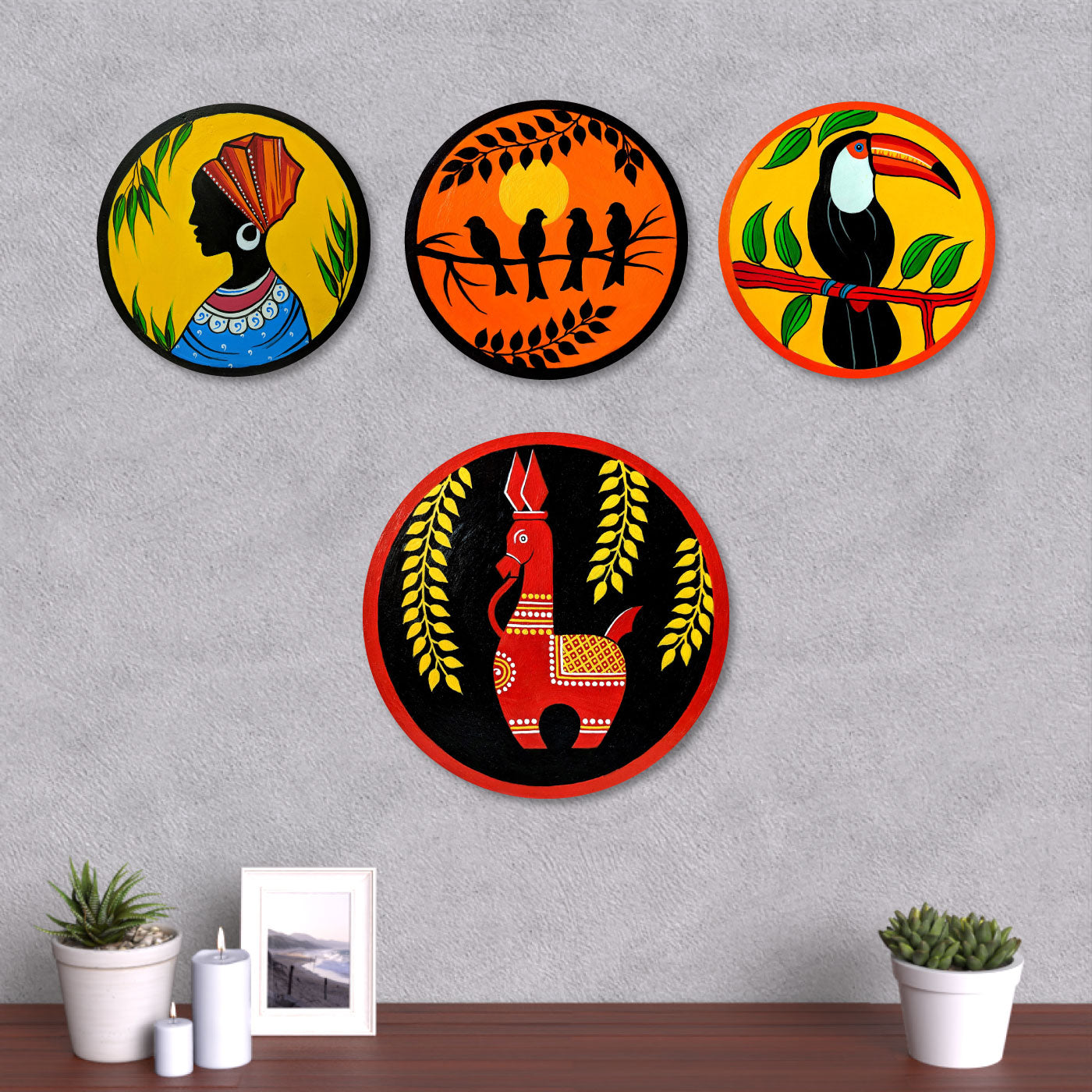 Handpainted Wooden Round Wall Hanging