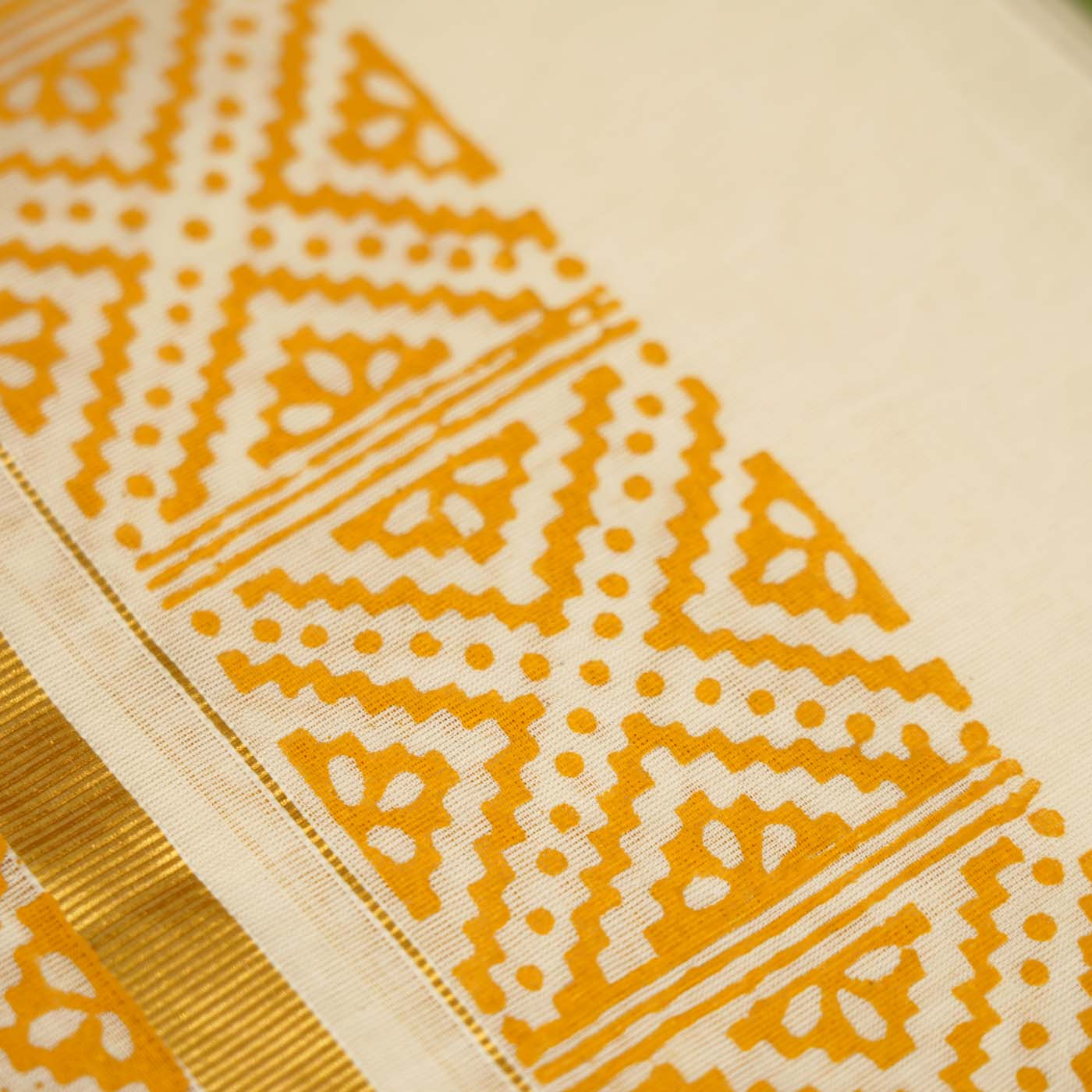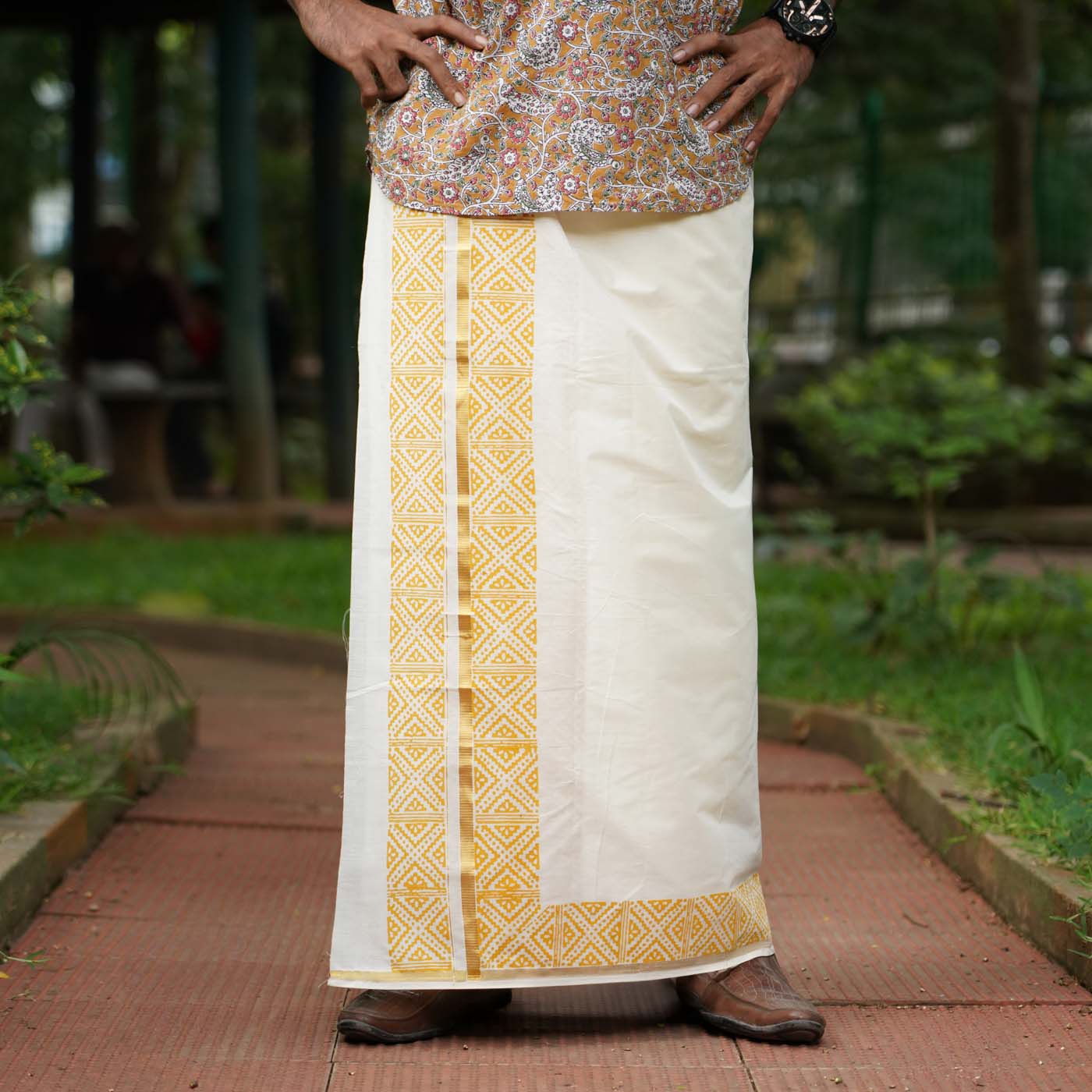 Mandala Motif Dhoti | Hand Block Printed Traditional Kasavu Dhoti With