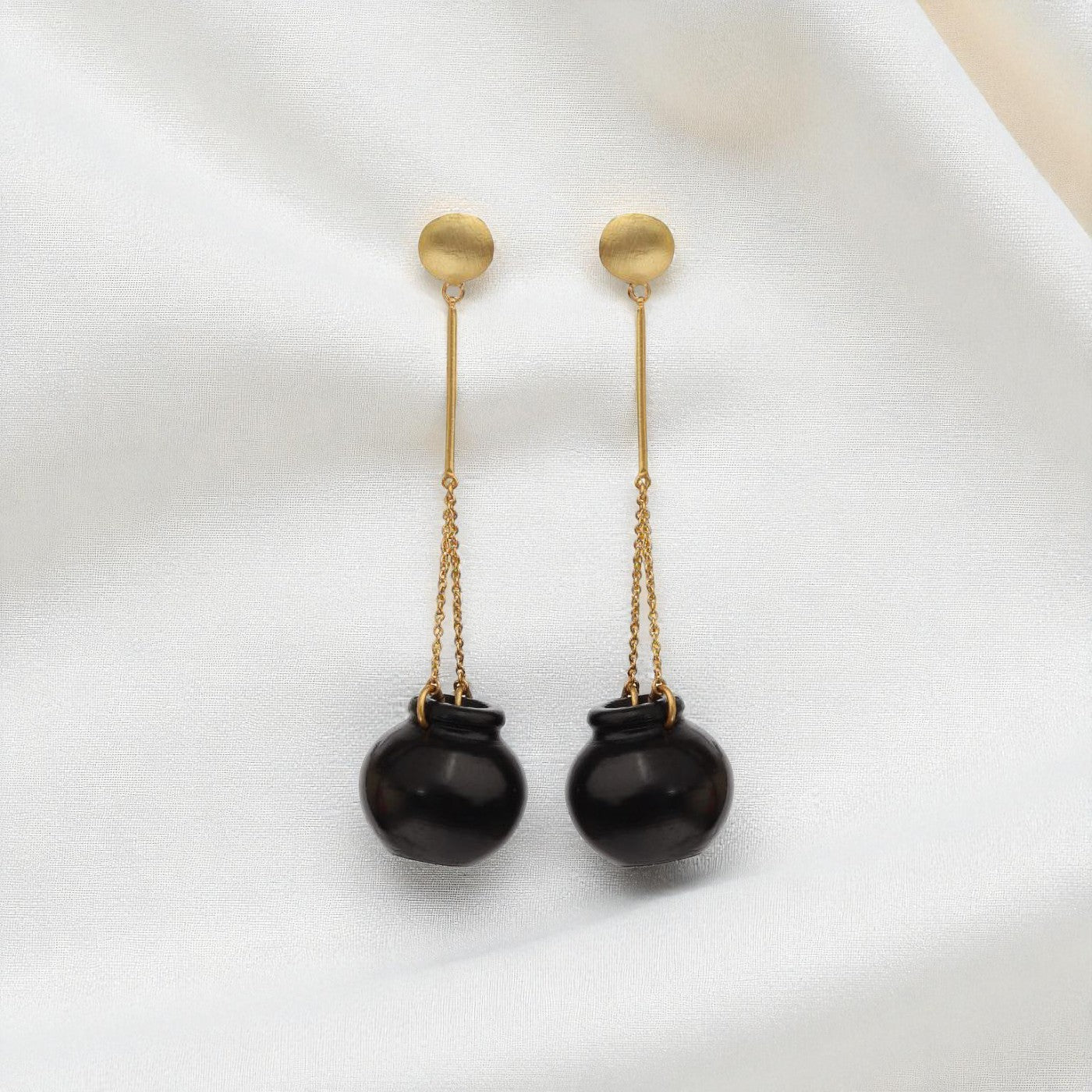 Minimal Handmade Long Pot Hanging Gold Plated Earrings | 22K Gold Plated