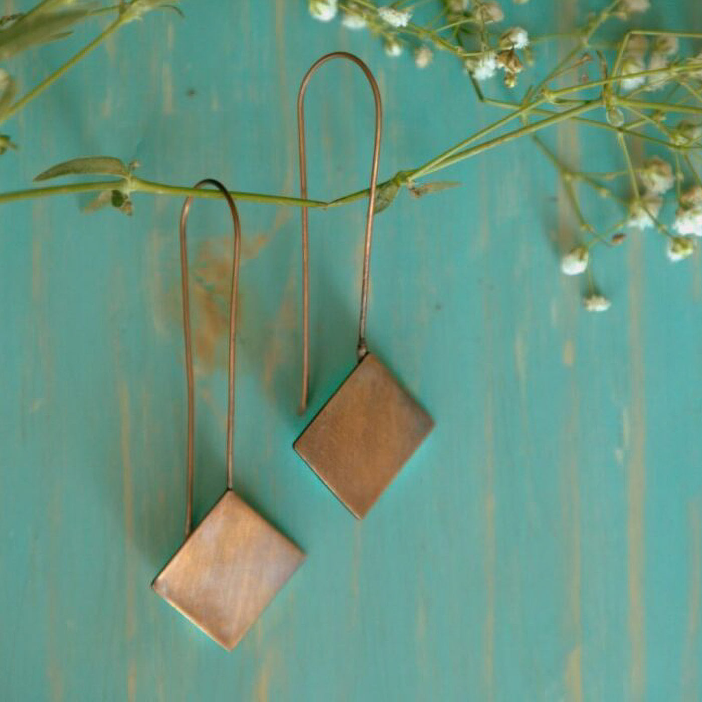 Minimalistic Rhombus Hooks Copper Earrings