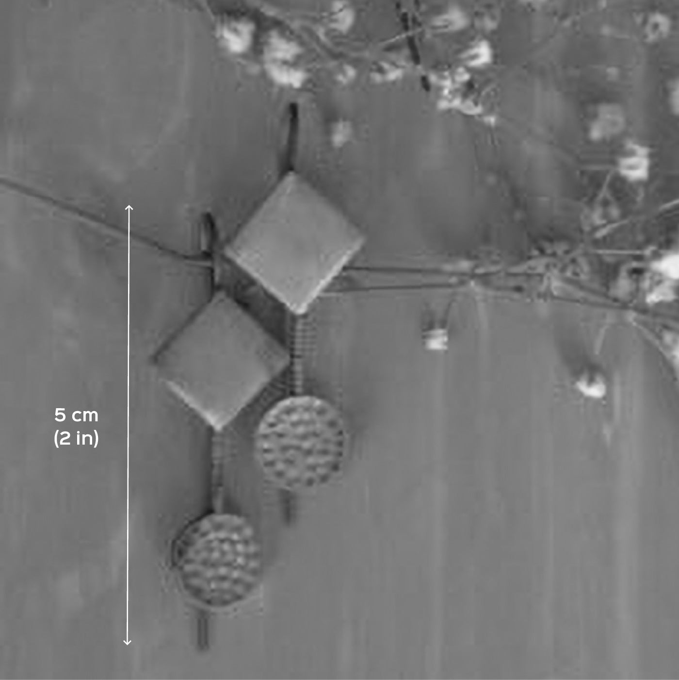 • These earrings showcase a unique circular rhombus design with a hammered texture.
