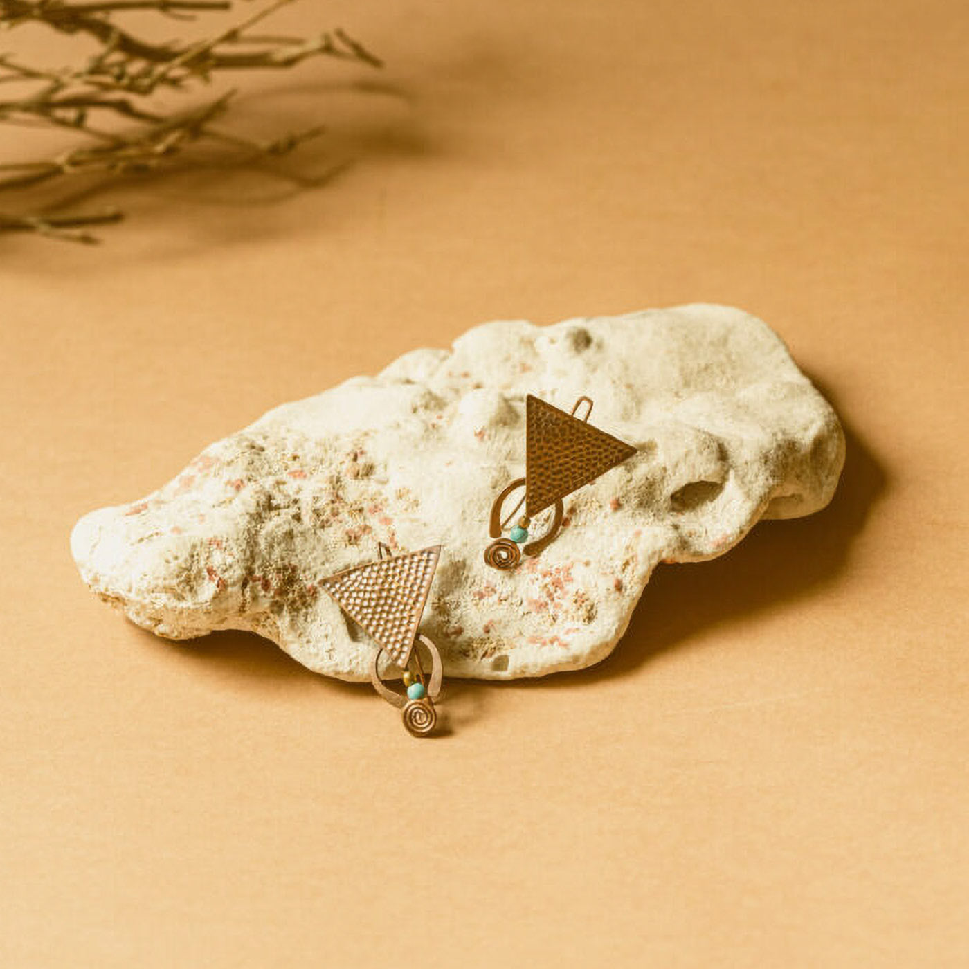 Modern Upside Down Beaten Triangular Horse Shoe Earrings