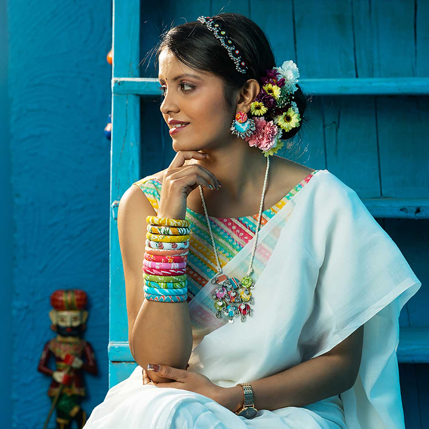 Multicolor Handcrafted Misa Printed Cotton Bangles | Set of 12