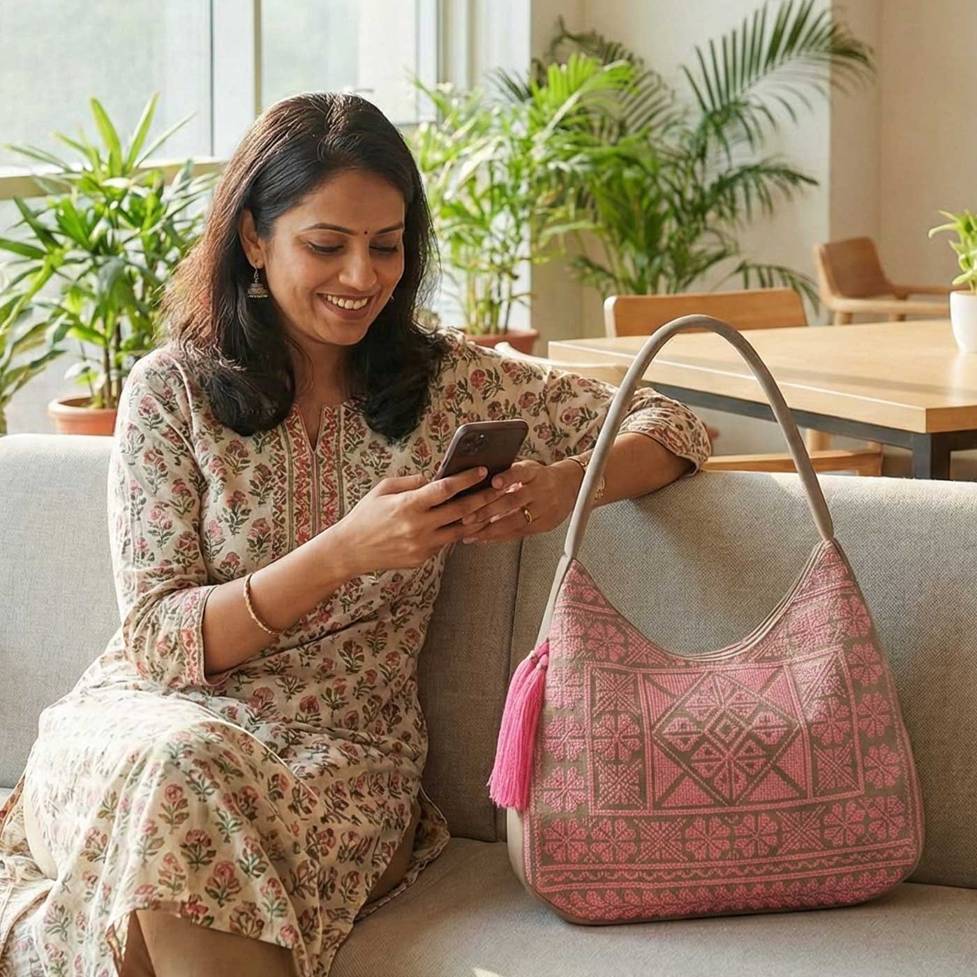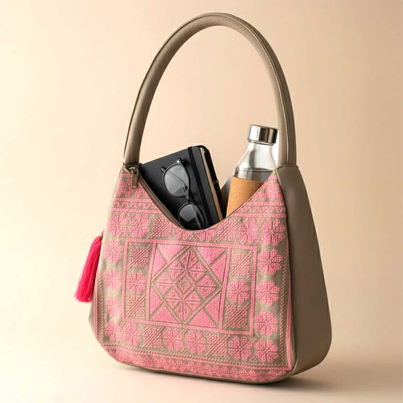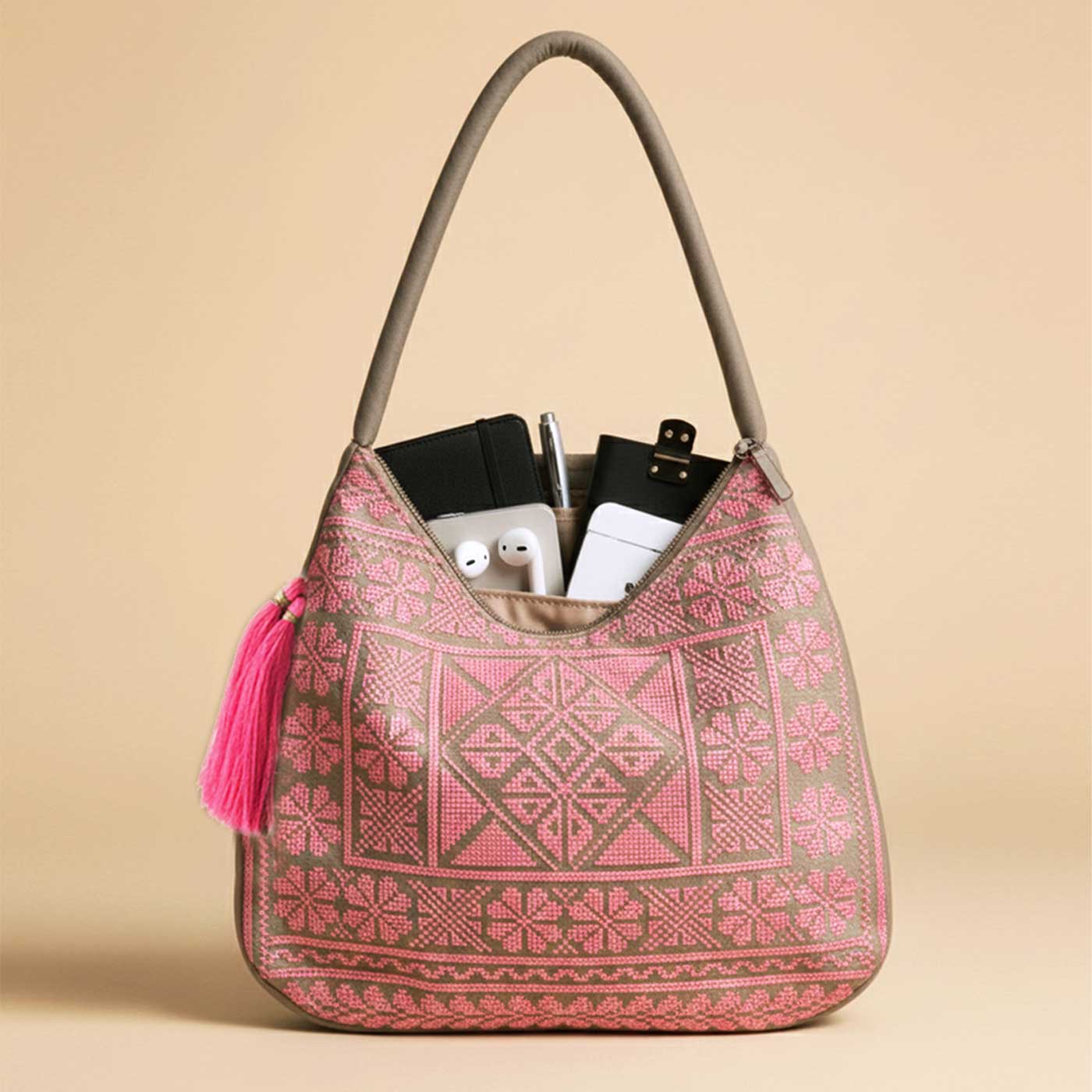 - Designed for effortless everyday use, this cross-stitch embroidered hobo shoulder bag features a relaxed silhouette that blends comfort with modern style.